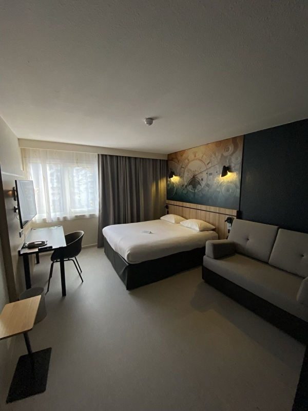 Hôtel très calme et facile d'accès, parking privé gratuit, proche de la gare SNCF. À 500 m, ligne de bus pour le centre-ville. Restaurant Au fil des Saisons, grande terrasse ombragée avec piscine,. Accueillantes, modernes et chaleureuses, dotées d'un lit confortable et d'une salle de bain fonctionnelle, nos chambres offrent tout le nécessaire pour passer un séjour agréable, ces dernières sont équipées d’un écran plat et d'un bouquet TNT.