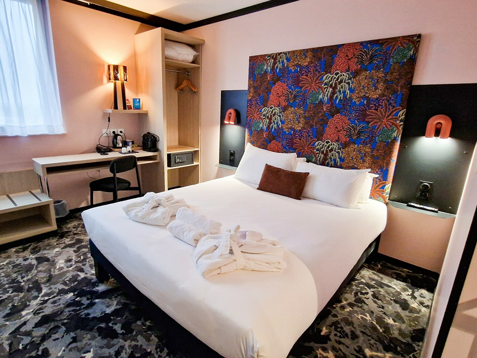 Chacune de nos 75 chambres, à grand lit ou à lits jumeaux, sont climatisées et parfaitement insonorisées. Accessibles par ascenseur, chacune dispose d'une literie haut de gamme, d'un bureau, d'une penderie, d'un coffre fort individuel, d'une TV Full HD et d'un plateau de courtoisie avec bouilloire. Toutes sont équipées de toilettes individuelles séparées et les salles de bains avec mélangeurs thermostatiques et colonnes de douches pluie.