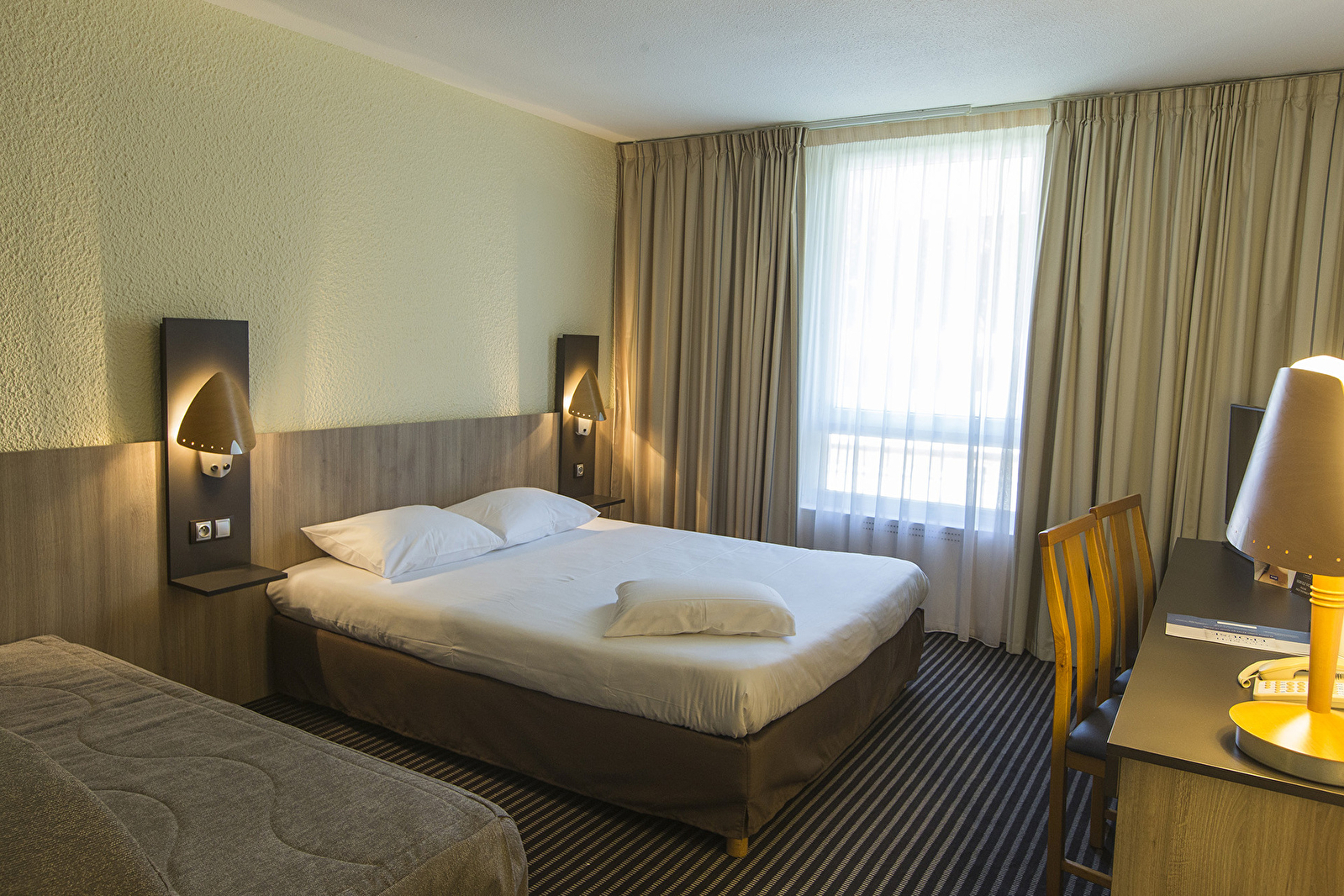 Notre établissement dispose de 87 chambres, d’un restaurant, d’un bar et d’une terrasse avec piscine, ainsi que de salles de réunions pouvant accueillir jusqu’à 180 personnes. Le parking ainsi que la connexion wifi haut débit sont gratuits.