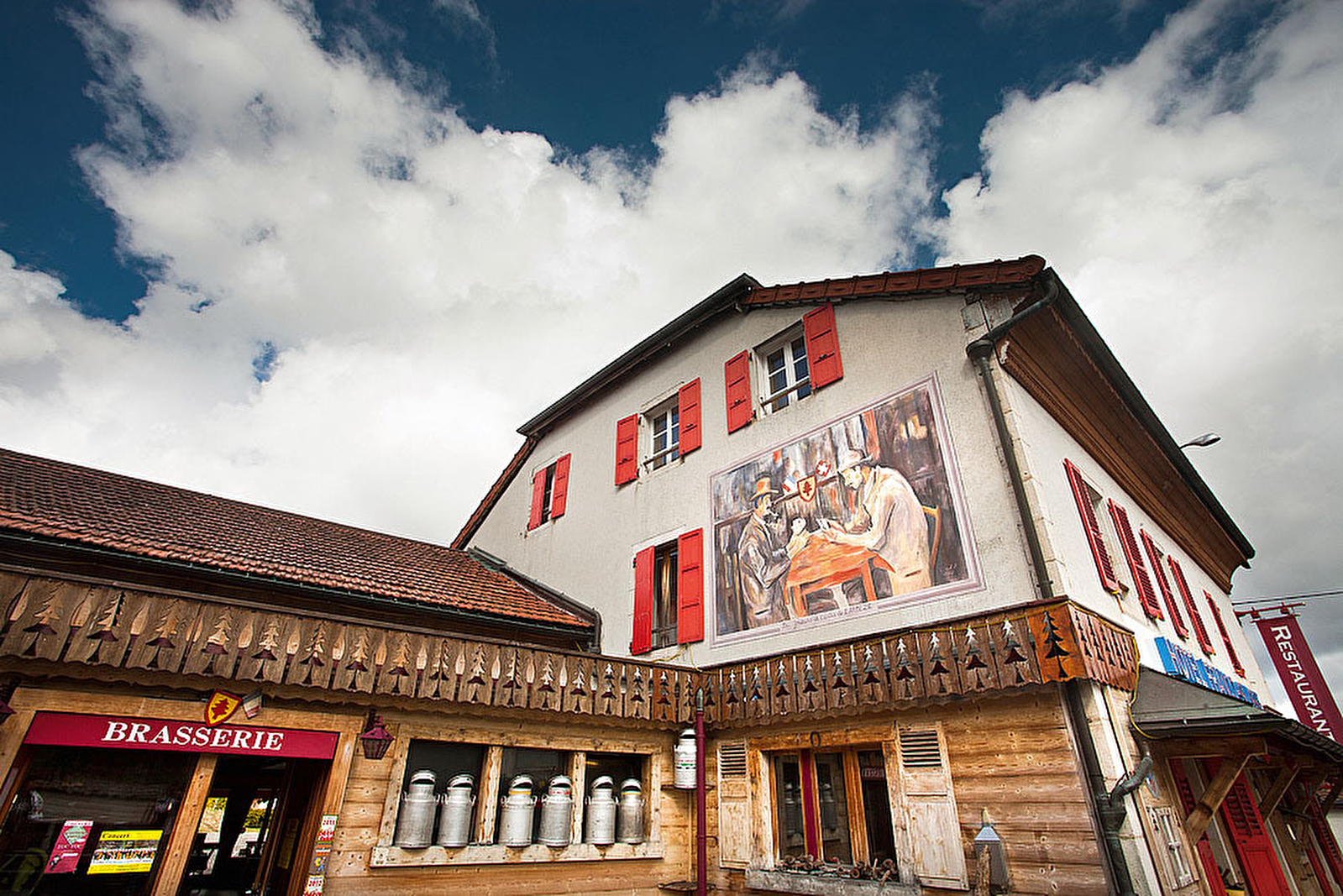 Hôtel-restaurant moitié en Suisse, moitié en France ! Service en brasserie : Tomme, Röstis, fondue suisse, ou au restaurant : demi-pension, repas d'affaire, repas de famille.