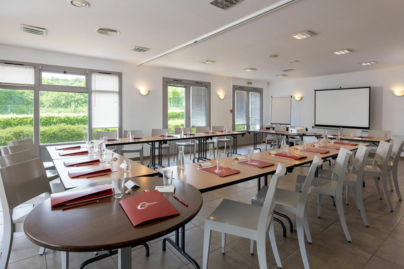 The Originals City, Mâcon Nord est idéalement situé à 200 mètres de la sortie N°28 de l'autoroute A6. L’hôtel dispose d'un grand parking sécurisé, un espace de verdure et une terrasse ; il dispose d'un espace dédié au co-working ainsi qu'une salle de séminaire pour tout type d'évènement. L'hôtel dispose de 50 chambres remises au goût du jour. Ambiance conviviale et familiale garantie !