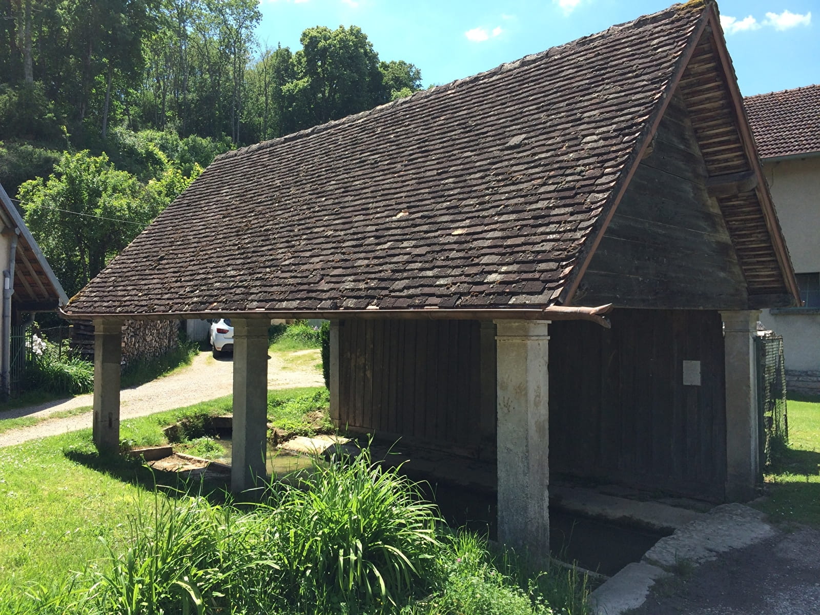 Le clocher comtois de l'église Saint-Martin surplombe le village vigneron et l'on devine un ensemble d'habitations aux toits couverts de petites tuiles qui se perdent entre deux ensembles collinéens. Bucey lès Gy s'est construit le long d'une vallée sèche à la porte des Monts de Gy et les coteaux laissent apparaître un ensemble de vergers ou de taillis boisés qui autrefois n'étaient que des vignes. L'habitat du village ce sont d'abord des maisons vigneronnes aux caves voûtées pour certaines majestueuses, mais c'est aussi un ensemble de petits édifices comme les calvaires, la mairie-lavoir, le caveau Duchon, des façades soigneusement décorées... les trajes, les murs en pierres sèches, les terrasses vigneronnes viennent compléter de magnifique décor architectural. Plan guide disponible à l'Office de Tourisme. Visites guidées possibles à partir de 10 pers. contacter l'Office de Tourisme.
