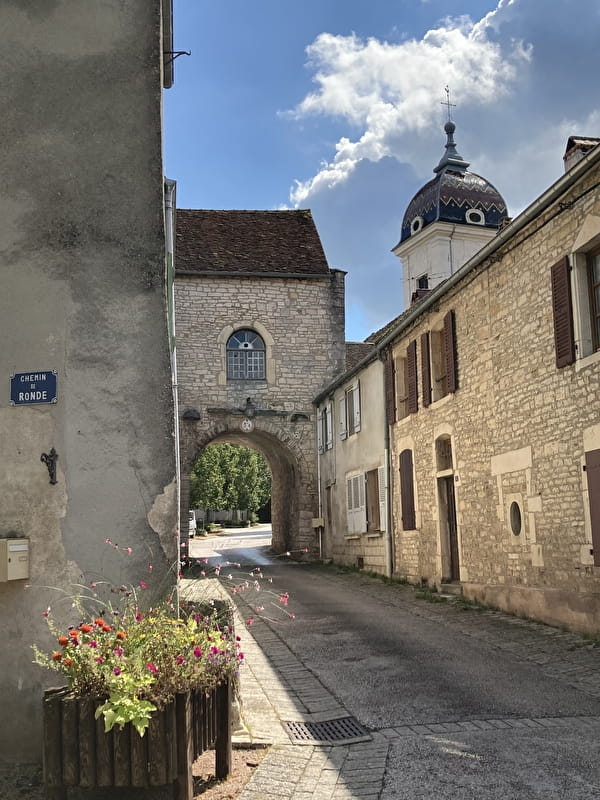 Le bourg a conservé la porte Saint-Hilaire et plusieurs demeures du 16 ème siècle, dont l'Hôtel Chateau-Rouillaud et la Maison Royale. L'église Saint-Hilaire (du 13 ème au 16 ème siècle), est l'un des monuments les plus riches de Franche-Comté, grâce aux chapelles adventices, notamment celle de Sainte-Catherine (14 statues des 14 et 16 ème siècle) et celle d'Andelot (16 ème siècle), célébrée par son décor somptueux en marbre polychrome, de Sampans (Jura), œuvre de Denis le Rupt (on lui doit aussi la chaire). Il n'a pas manqué de marquer sur la joue de Jean d'Andelot, la glorieuse estafilade que lui fit François 1er au siège de Pavie (1525). Le triptyque (1561) du chœur a été peint par le Pesmois Jacques Prévost, élève de Michel-Ange. Présence d'une maison de maitre des forges (18 ème siècle MH) sur les bords de l'Ognon, en aval.