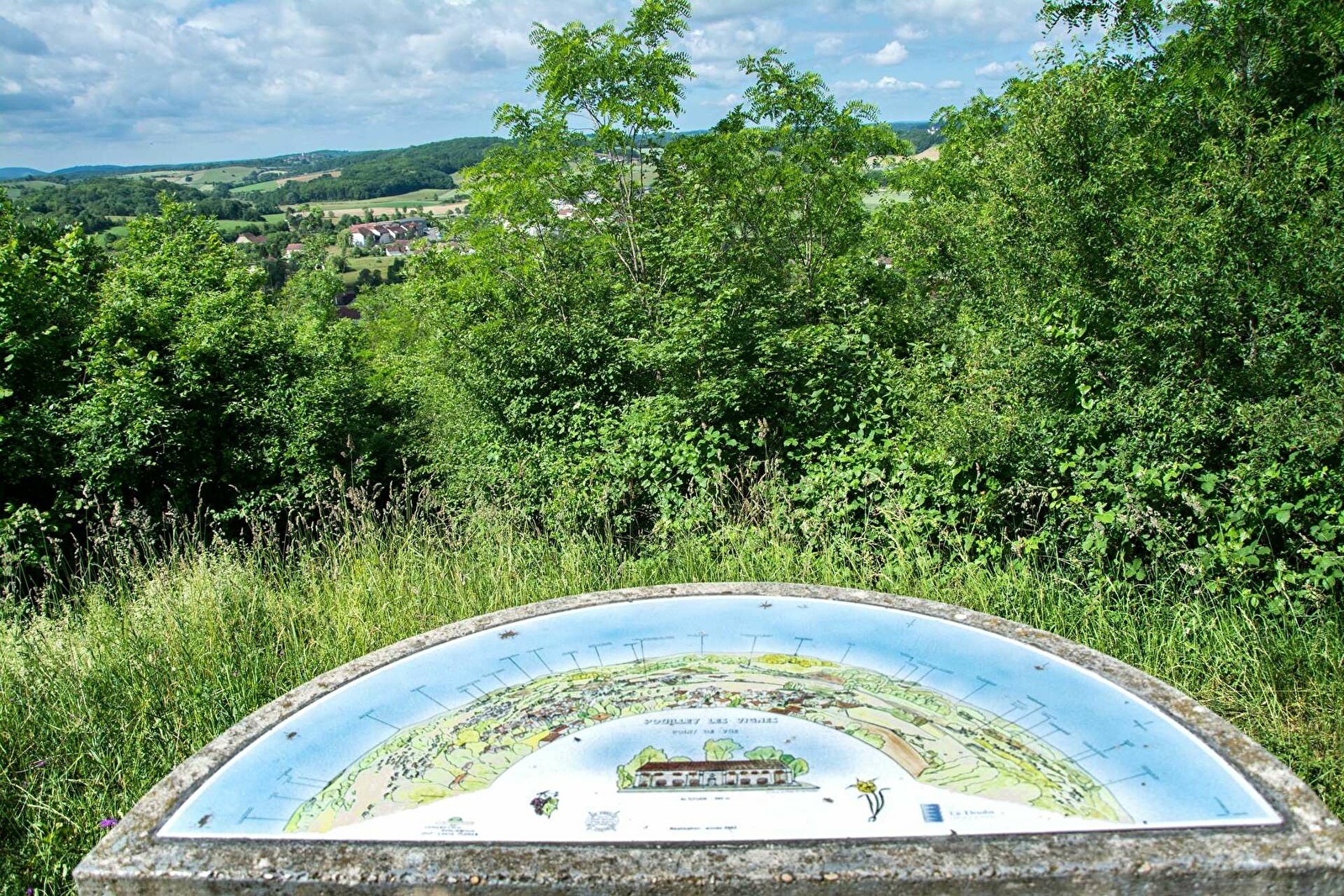 Pouilley-les-Vignes est cerné de collines dont la plus caractéristique est le Mont de Pouilley qui constitue un véritable écrin vert au-dessus du village. Il y subsiste les vestiges d’un ancien château du XIIIe siècle et de bastions militaires du XIXe siècle.