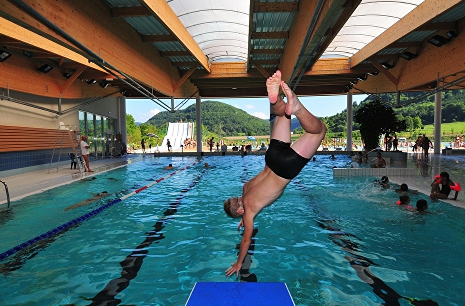 En été et en extérieur, un bassin ludique avec rivière à contre courant, banquettes bouillonnantes, pentaglisse, pataugeoire, aire de pique-nique, beach-volley, grignoterie. La possibilité de vous offrir Nautiloue en version privative : réservation à l’heure.