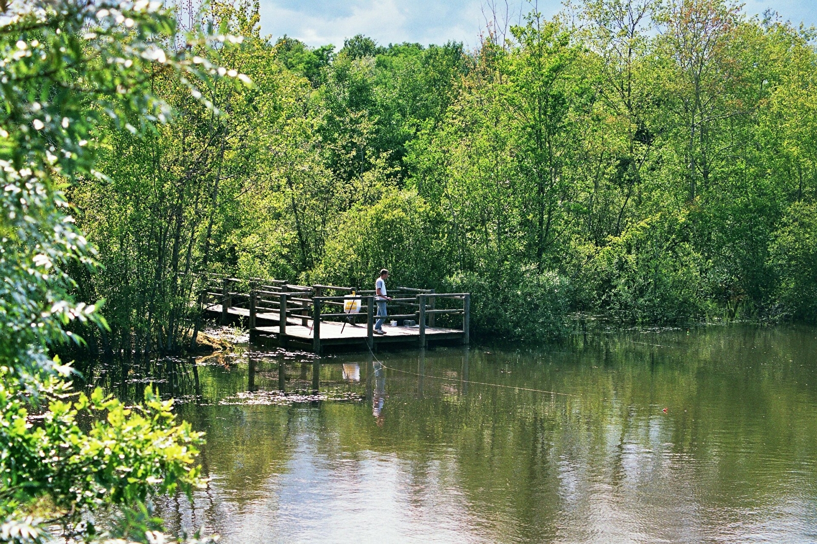 Dans cette ancienne carrière est aménagé un espace de loisirs avec tables de pique-nique, terrain pour jouer aux boules et étang pour la pêche.