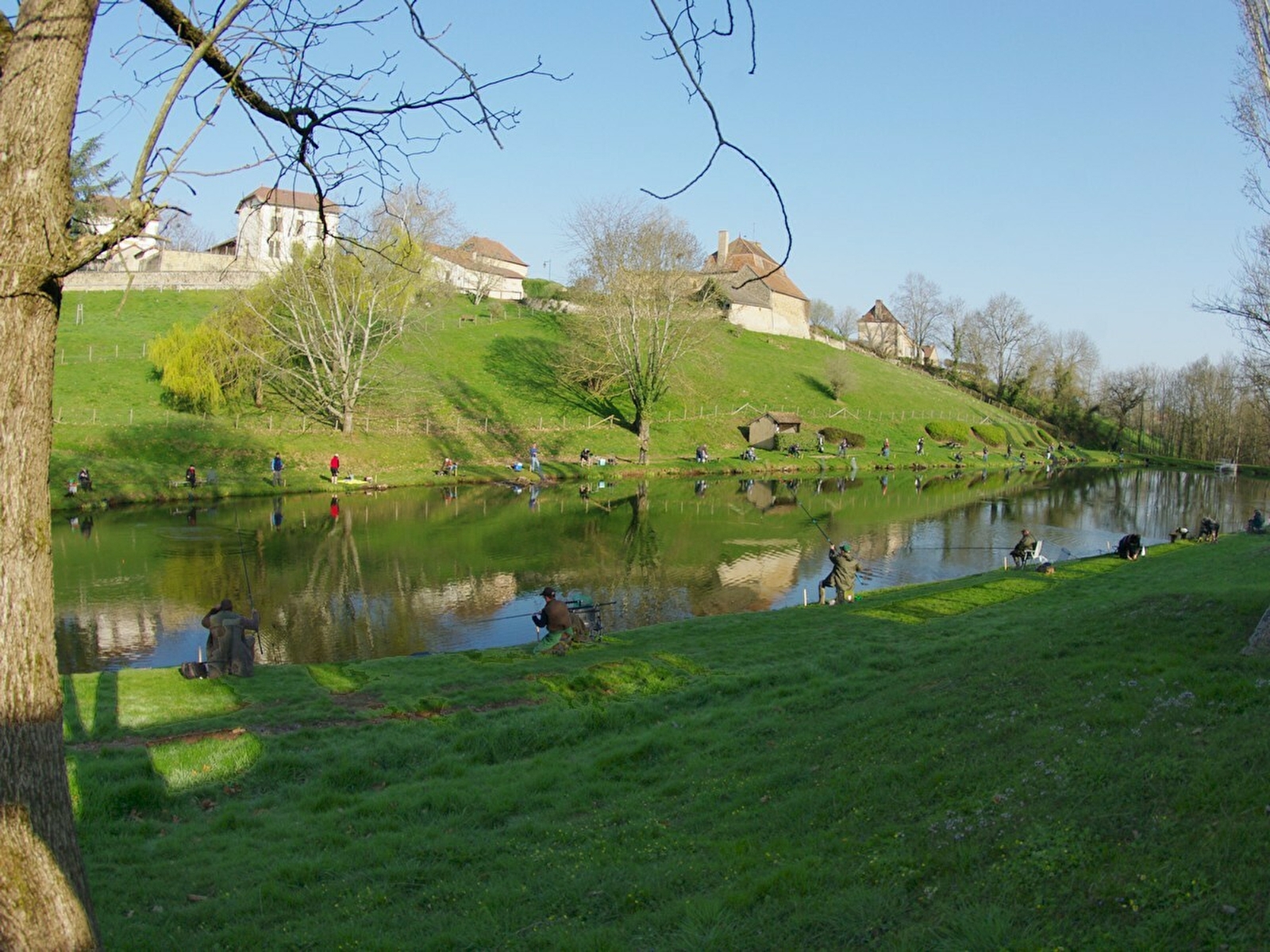 Le bourg et son église en partie romane surplombent le plan d'eau, lieu de détente avec tables de pique-nique et une aire de jeux pour enfants. Dans un cadre verdoyant, en toute tranquillité, il est possible de pêcher avec une carte à la journée. Empoissonnement annuel : gardons, brochets, sandres, goujons, carpes, tanches, perches. Le safari truites aura lieu le 29 mars 2025.