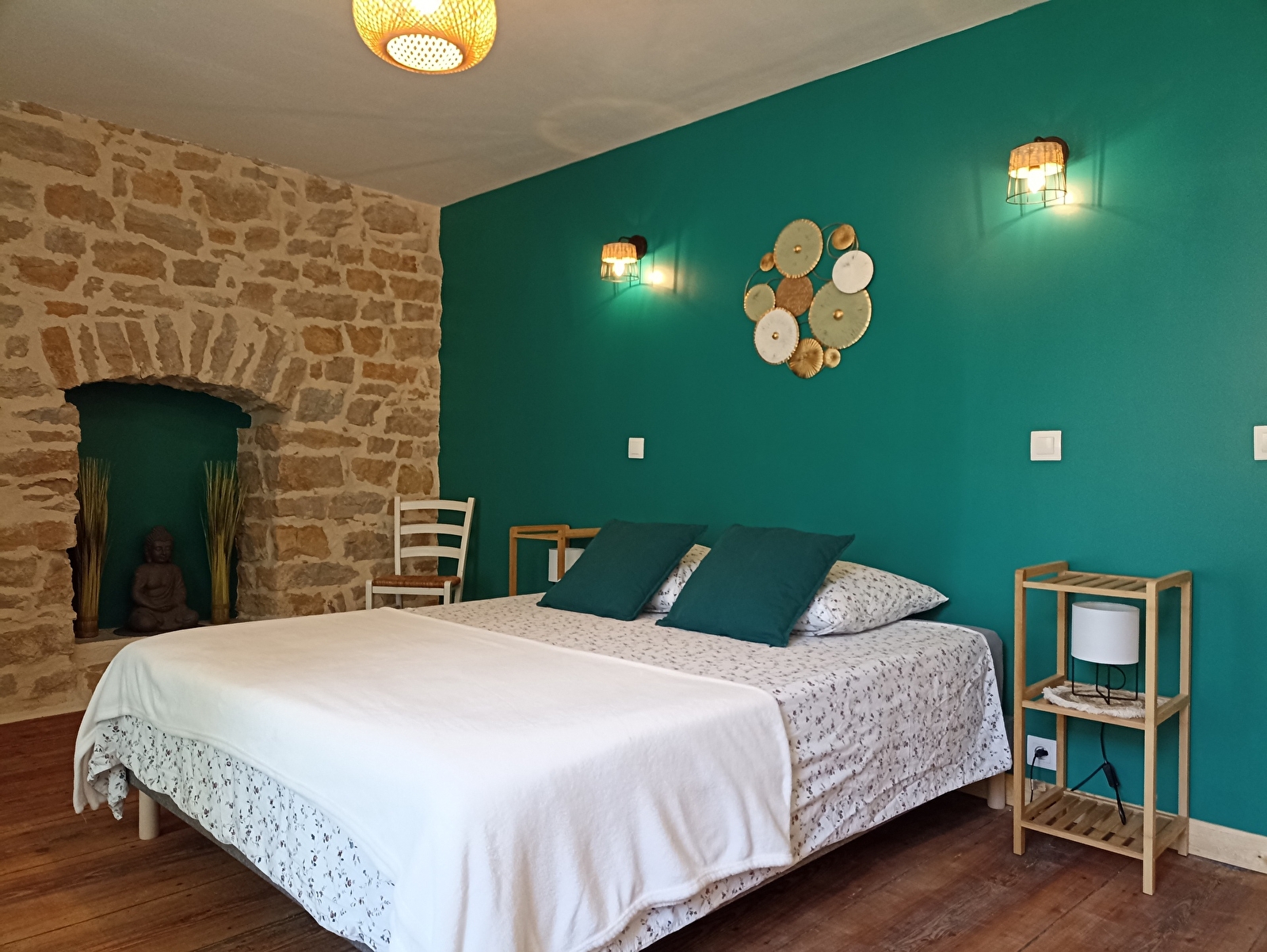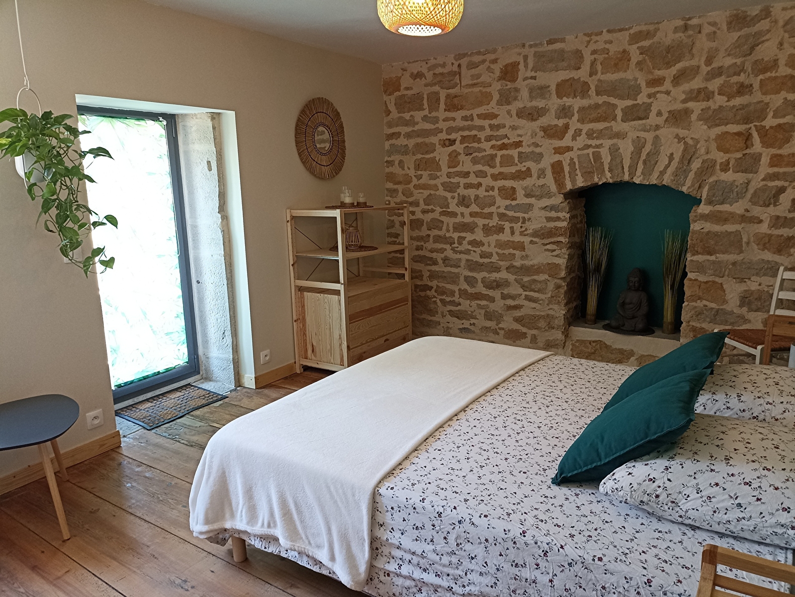 La chambre très chaleureuse est munie d'un lit très confortable de 160x200. Le lit est fait à votre arrivée.