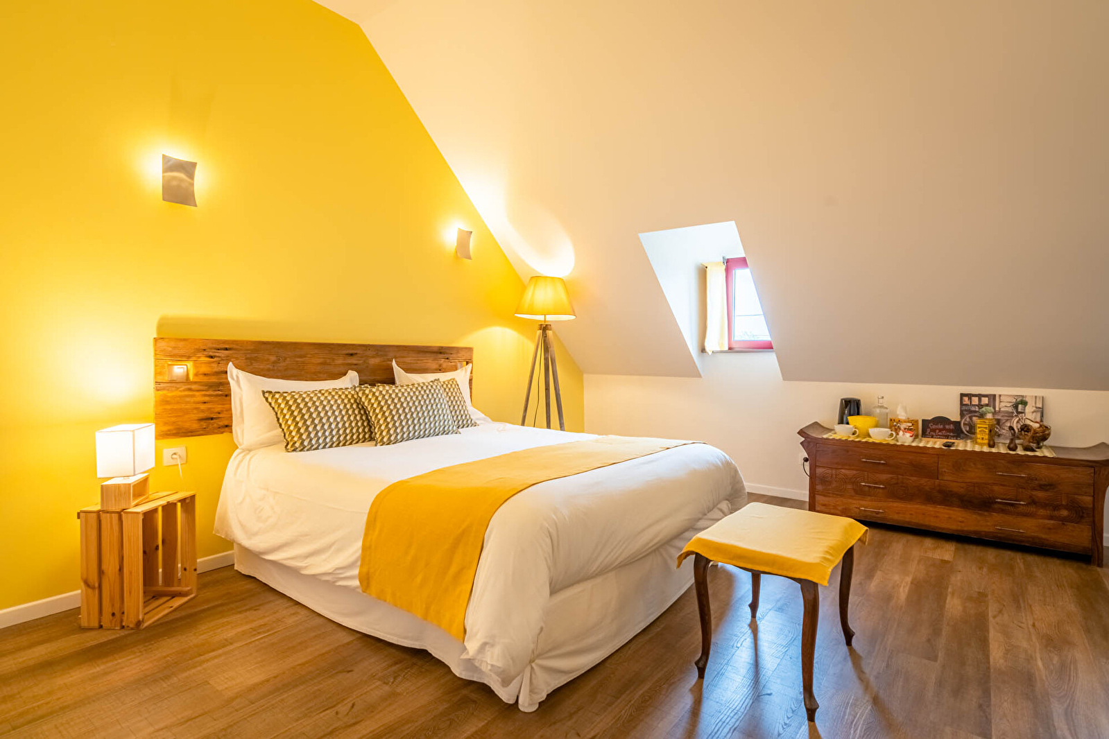 Face à la côte des grands crus de Bourgogne, à 10 kms de Beaune et à 25 kms de Chalon-sur-Saône, Martine et Hubert vous accueillent dans leur gîte, fruit d'un travail motivé par le souci du détail et du grand confort, au sein d'une spacieuse ferme bressane traditionnelle soigneusement rénovée, au cœur d'un village typique, calme et tranquille, entouré de forêts et d'étangs, niché aux confins de la Côte d'Or. Agréable propriété dotée d'un large espace aménagé et fleuri, ouverte sur la nature environnante. Charmant cadre paysager préservé, champêtre et naturel. Très bon confort. Très spacieux. Grande pièce de vie. Chaleureux cachet campagnard d'inspiration contemporaine, à l'élégante architecture de style. Ambiance zen et cosy. Terrasse privative exposée et ombragée. Vaste jardin aménagé, soigné et fleuri de 4000m². Composition : Gîte totalement indépendant (sans vis-à-vis) mitoyen à l'habitation des propriétaires (comprenant 3 chambres d'hôtes). Gîte en duplex (1er + 2ème étage). Chauffage par Pompe à Chaleur. Climatisation. Wifi. Accès au gîte au 1er étage : Séjour-cuisine-salon (canapé convertible 2 p. en appoint de 140x190cm), 1 chambre (lit 2 p. 160x200cm) avec baignoire balnéo privative. Salle d'eau (douche/WC), WC indépendant. 2ème étage : chambre en mezzanine (2 lits 1 p. 90x190cm) et une chambre (lit 2 p. 140x190cm) avec salle d'eau privative (douche/WC). Terrasse privative. Terrain commun de 4000m². Parking privé. Local vélos fermé et sécurisé (en commun). Vous pourrez également découvrir les animaux des propriétaires (chiens, moutons, volailles...). Commerces à 1 km. Beaune, ville d'art et cité viticole, à 10 minutes. Beaune côté Plage : 14 000 m² de plages, 4 bassins de baignade naturelle, mur d'escalade unique en France, espace restauration.