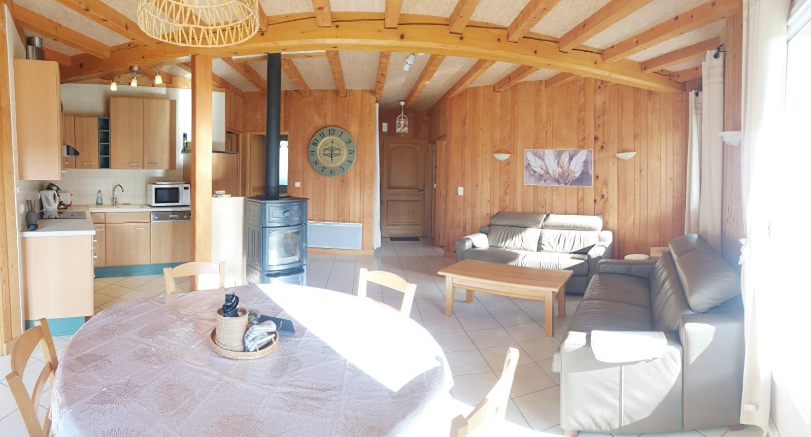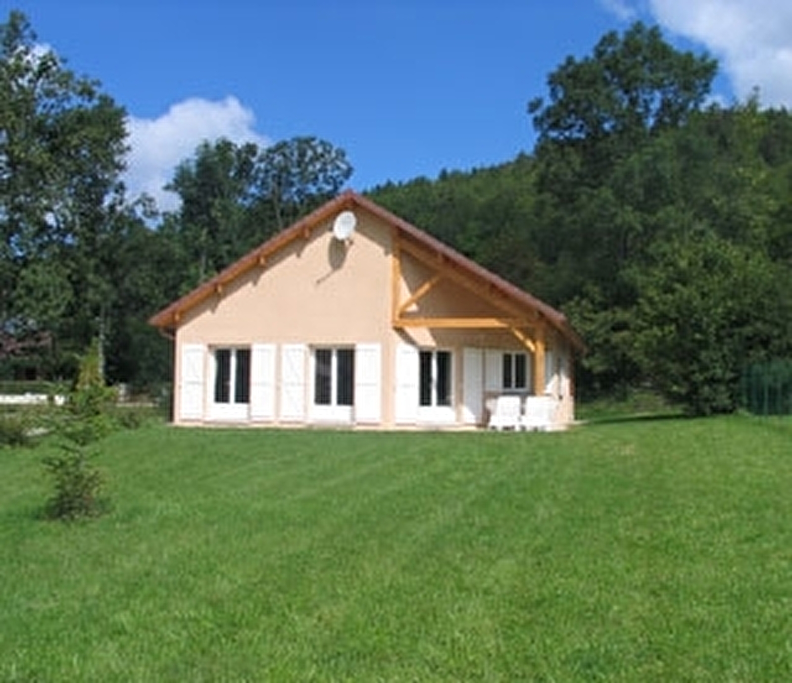 Maison indépendante de plain-pied de grand confort. Intérieur bois, cuisine entièrement équipée, salon-séjour, poêle à bois, salle d'eau. ch1: 1 lit 2 pl, ch2: 2 lits 1 pl, ch3: 2 lits 1 pl superposés. Terrasse couverte de 30m², salon de jardin, barbecue, parking couvert. Chauffage électrique et bois. Charges non comprises. Tarifs variables hors saison en fonction du nombre de personne. Pour avoir le détail des tarifs : contactez la propriétaire ou consultez le site www.gitejura.com. Connexion internet wifi sur place. Possibilité de location de draps: 7€/pers. Au bord du GR et à 1 km du lac de CHALAIN. tarif animal: 35€/semaine. Pentecôte et Ascension : tarif sur demande auprès de la propriétaire. ATTENTION SUR JUILLET ET AOUT : uniquement à partir de 15 jours