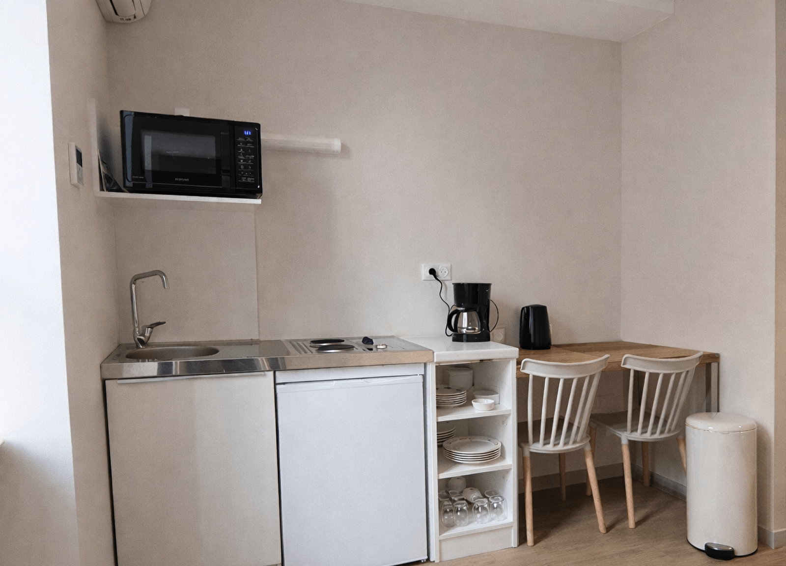 Cette charmante demeure propose 6 studios entièrement rénovés, récemment remis à neuf et pensés pour offrir un haut niveau de confort et une grande fonctionnalité. Climatisés, soigneusement aménagés et décorés avec sobriété, ils disposent d’équipements modernes pour un séjour agréable, quelle que soit sa durée.