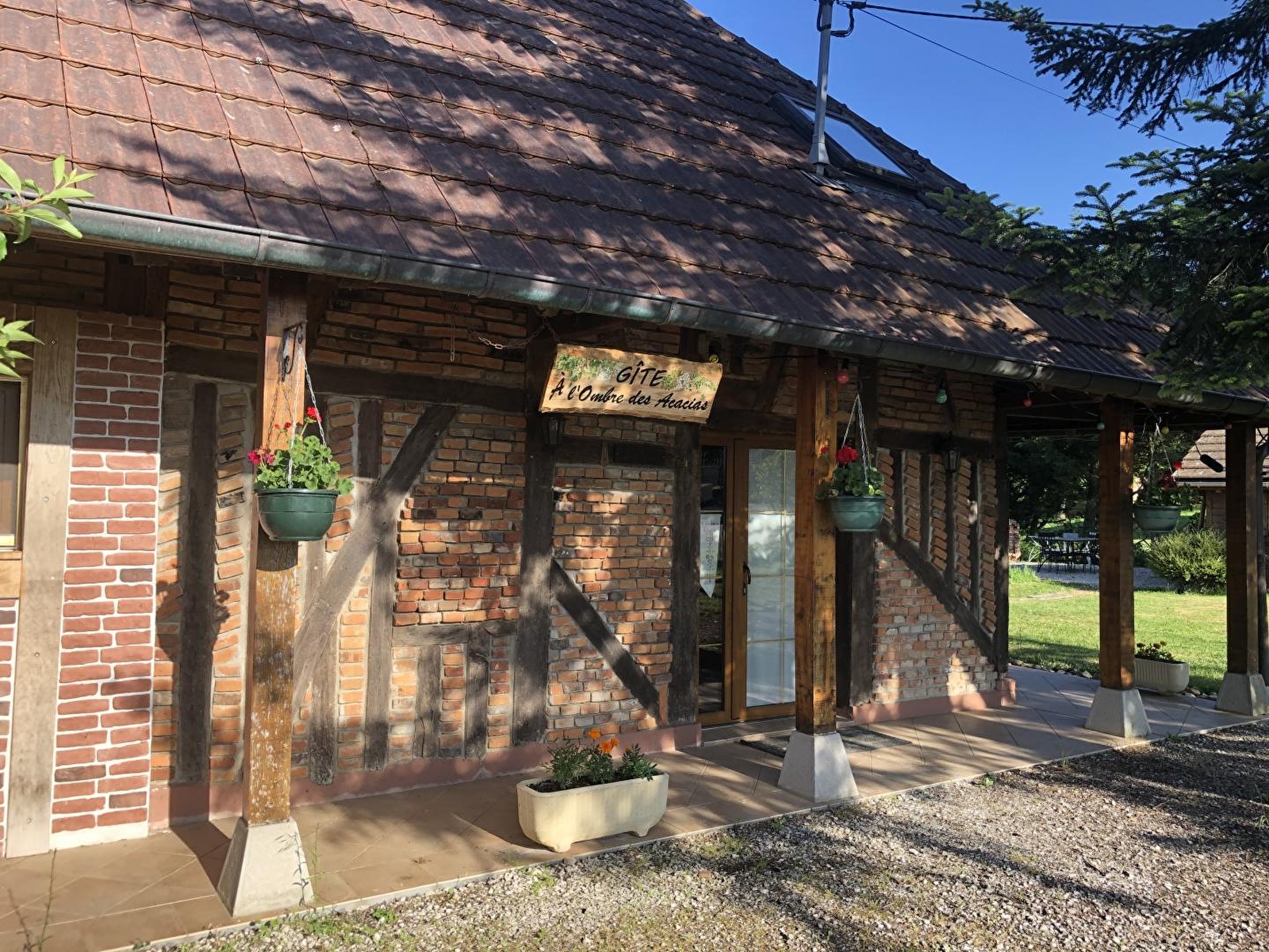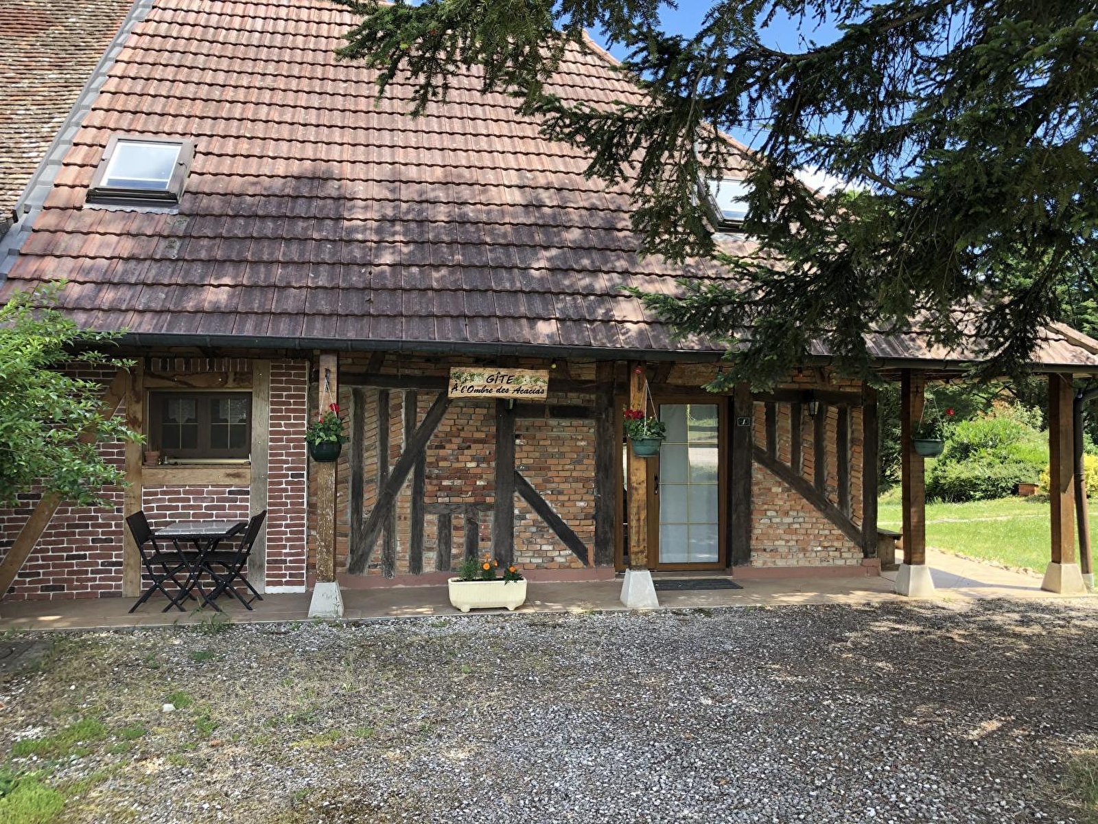 Thérapeute en soins énergétiques & "bien-être" (prestations possibles sur place), Christelle vous accueille au sein d'une ravissante ferme bressane du 19ème siècle soigneusement restaurée - d'architecture traditionnelle en briques & pans de bois - sise en lisière de champs & prairies (accueillant de paisibles charolaises en saison), à deux pas d'une bucolique rivière poissonneuse et d'un petit bois. Environnement calme, au cœur d'un hameau rural & agricole blotti en pleine campagne bressane louhanaise, entre pleine nature & champs de cultures, à 2.5 km du petit village typique de Torpes (abritant 3 secteurs naturels protégés, classés en ZNIEFF). Spacieux gîte de très bon confort, d'architecture atypique (vaste espace semi ouvert occupant tout l'étage en esprit "loft"). Chaleureux cachet campagnard sublimé par les riches traces du bâti originel (sculpturale charpente lovée sous un imposant volume "cathédrale", murs en briques & pans de bois…). Ambiance dépaysante d'une ancienne demeure chargée d'histoire. Beaucoup de charme & caractère. Equipement très complet. Large terrasse panoramique dominant un agréable jardin de 700m² (végétalisé, arboré & fleuri) & la douce campagne environnante (complétée par une seconde terrasse en gravier). Belle vue dégagée. Visite possible du poulailler voisin des propriétaires & sa petite basse-cour (poules, coq, oies, canards…) pour le plaisir des petits & grands.