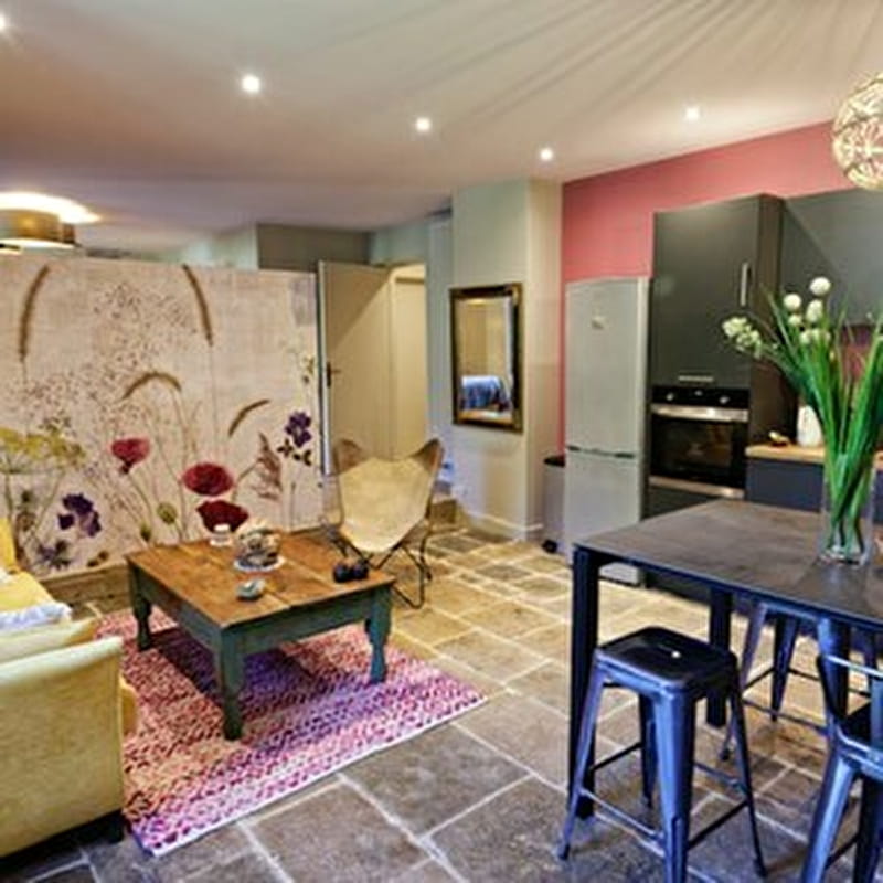 Loft de 50m2 dans l'ancienne dépendance du Château. Cuisine totalement équipée, salle de bain à l'italienne, une chambre double et un deuxième couchage possible en canapé lit pour 2 enfants séparée par une cloison.