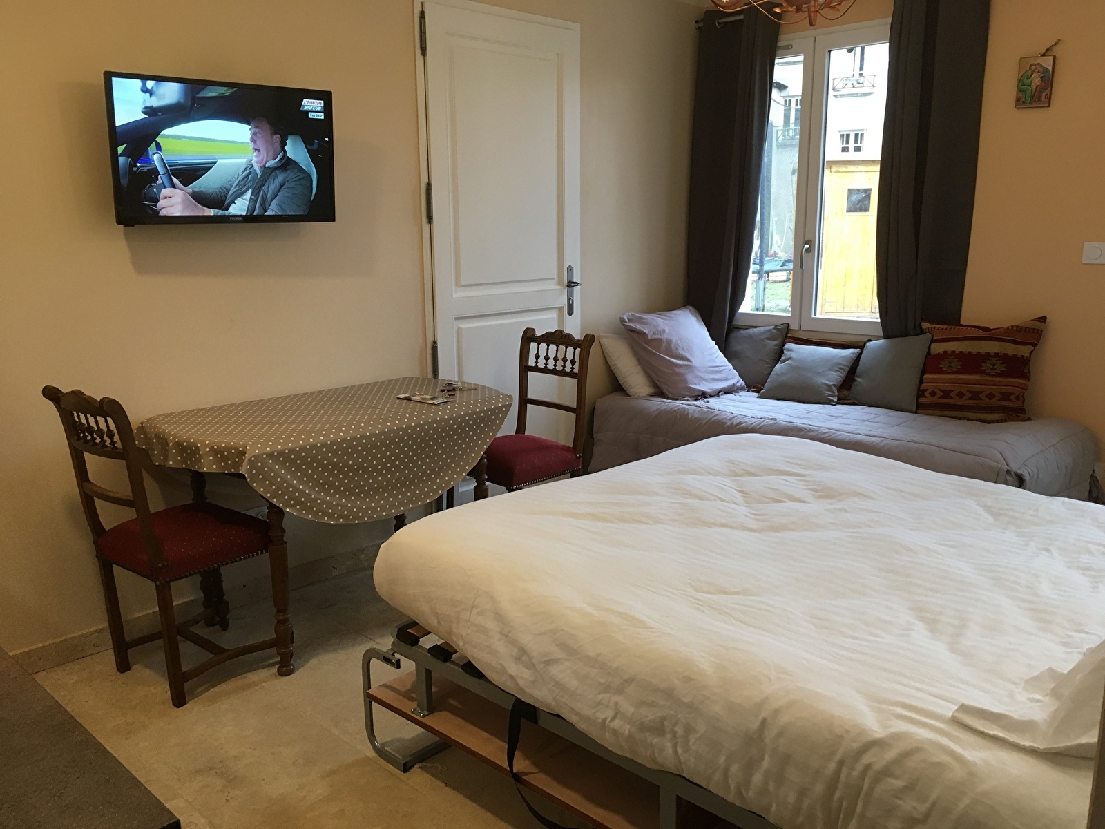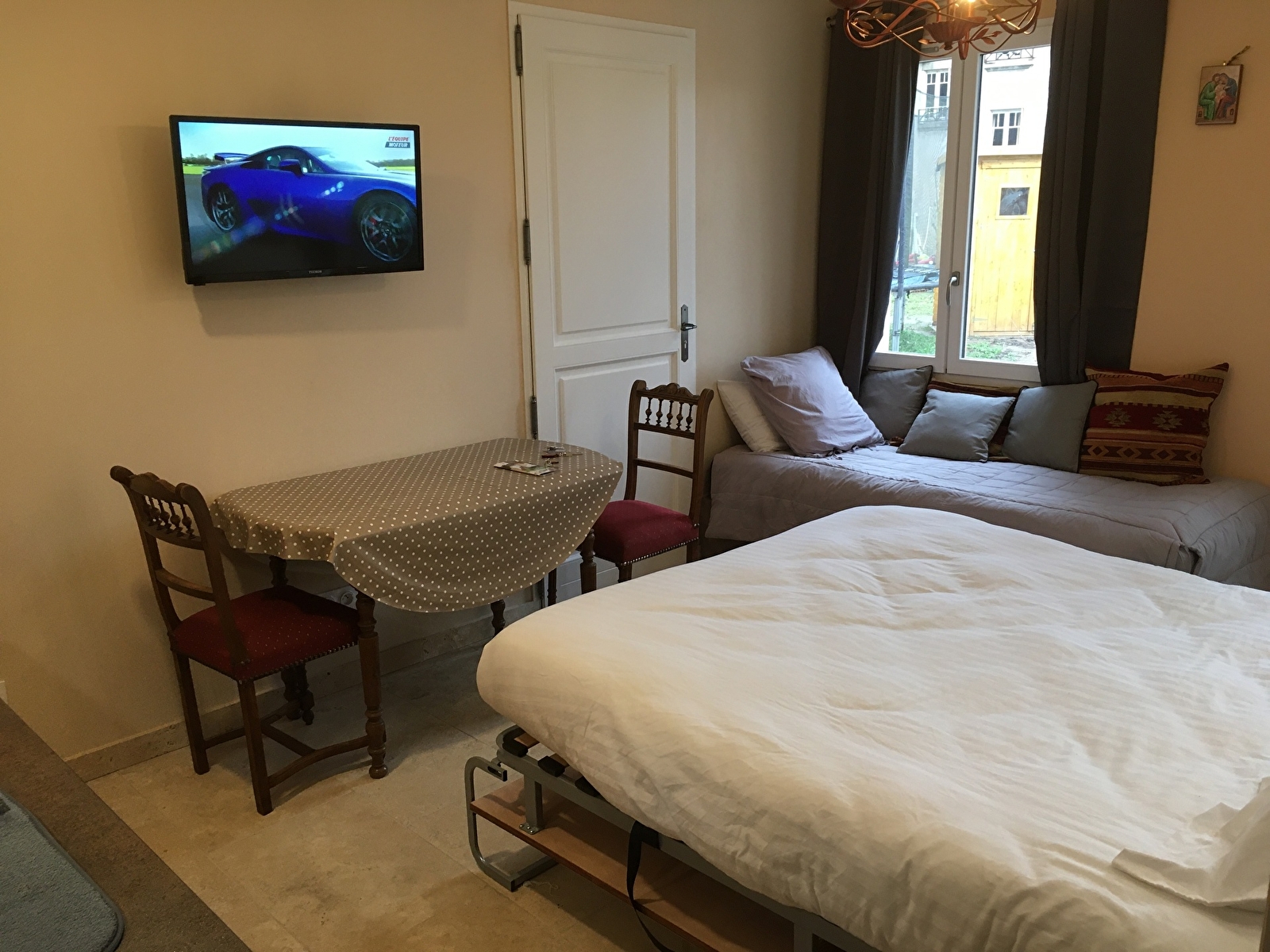 Petit studio, mais logement autonome complet et de plain-pied. Vous y trouverez une cuisine hyper équipée, une salle d’eau vaste avec douche à l’italienne, WC et lavabo.