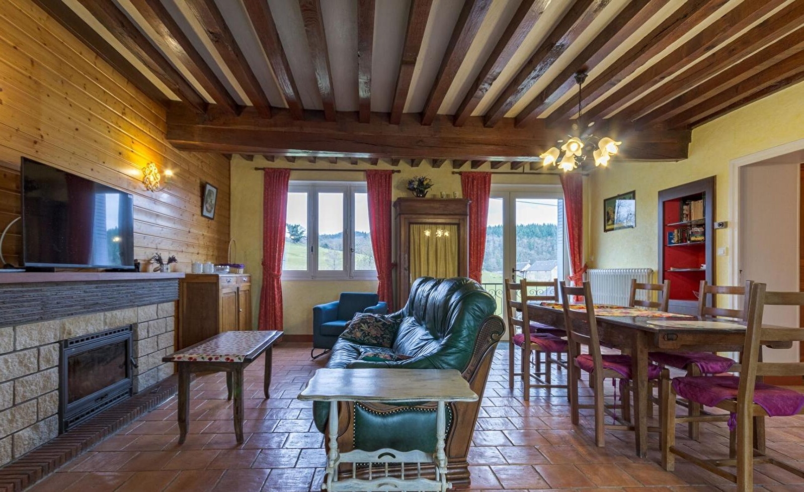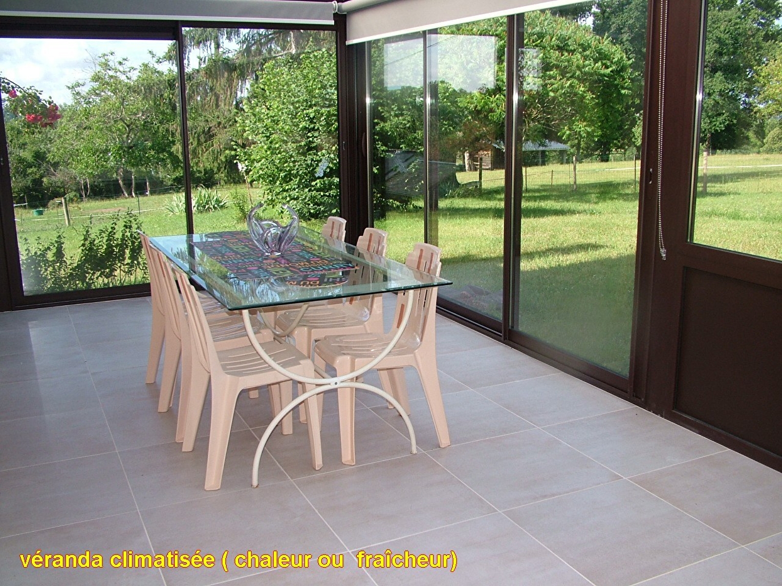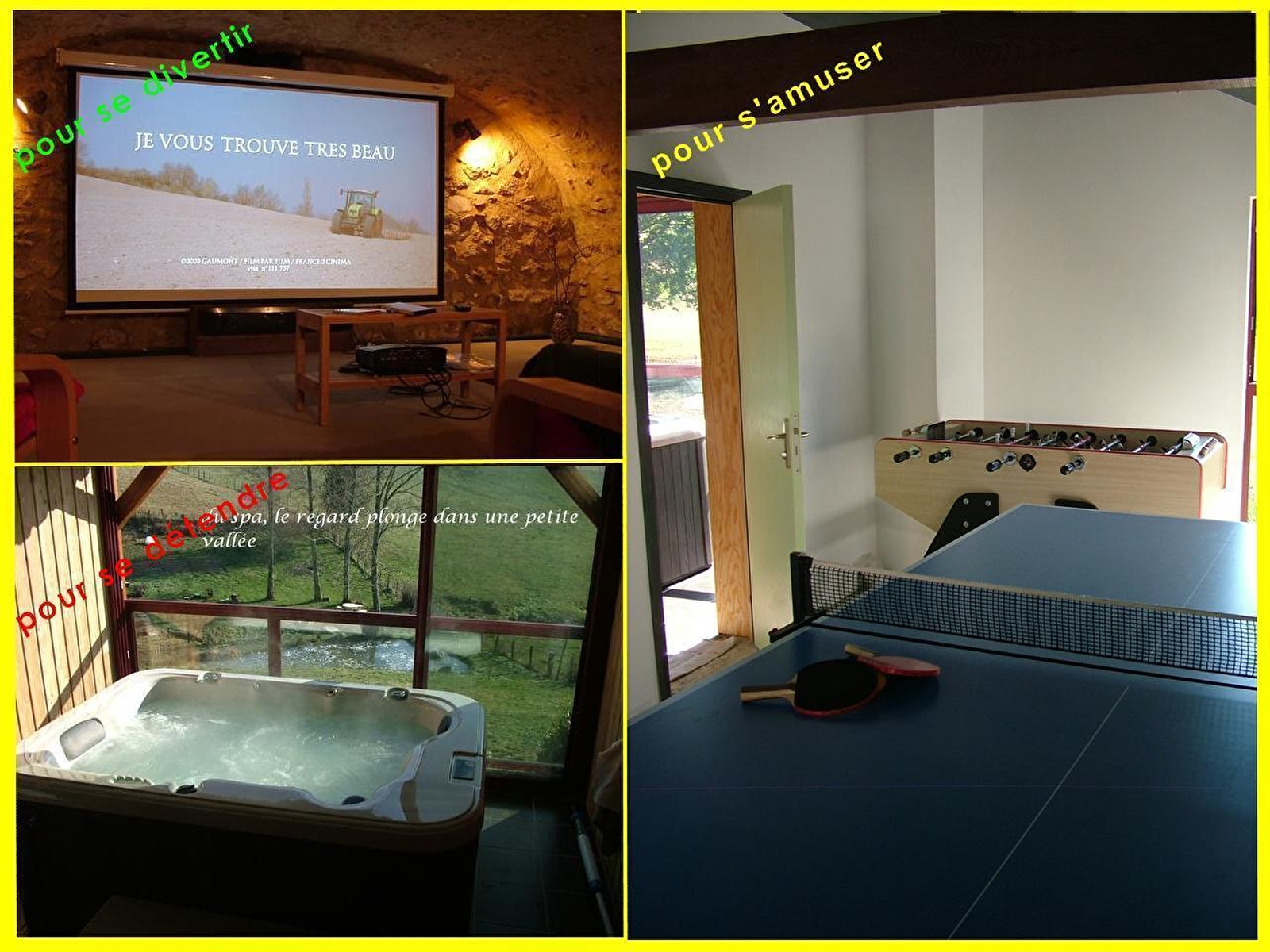 Maison individuelle de 123 m2 comprenant: pièce à vivre, cuisine , l'ensemble communiquant avec une véranda équipée de clim réversible, chambre sanitaires salle d'eau, à l'étage 2 chambres. Sa situation dans le cadre magnifique d'un château à l'allure féodale vous transportera hors du temps. Sur place nombreux équipements de loisirs: salle cinéma aménagée dans une authentique cave voutée, salle bien être (spa, sauna japonais), salle de jeux (baby foot, tennis de table), grill finlandais, terrain de pétanque, plan d'eau, ânes. La proximité de deux autres gîtes sur place permet l'accueil de groupe (17 personnes). Ambiance montagnarde et bain vivifiant de chlorophylle assurés!!