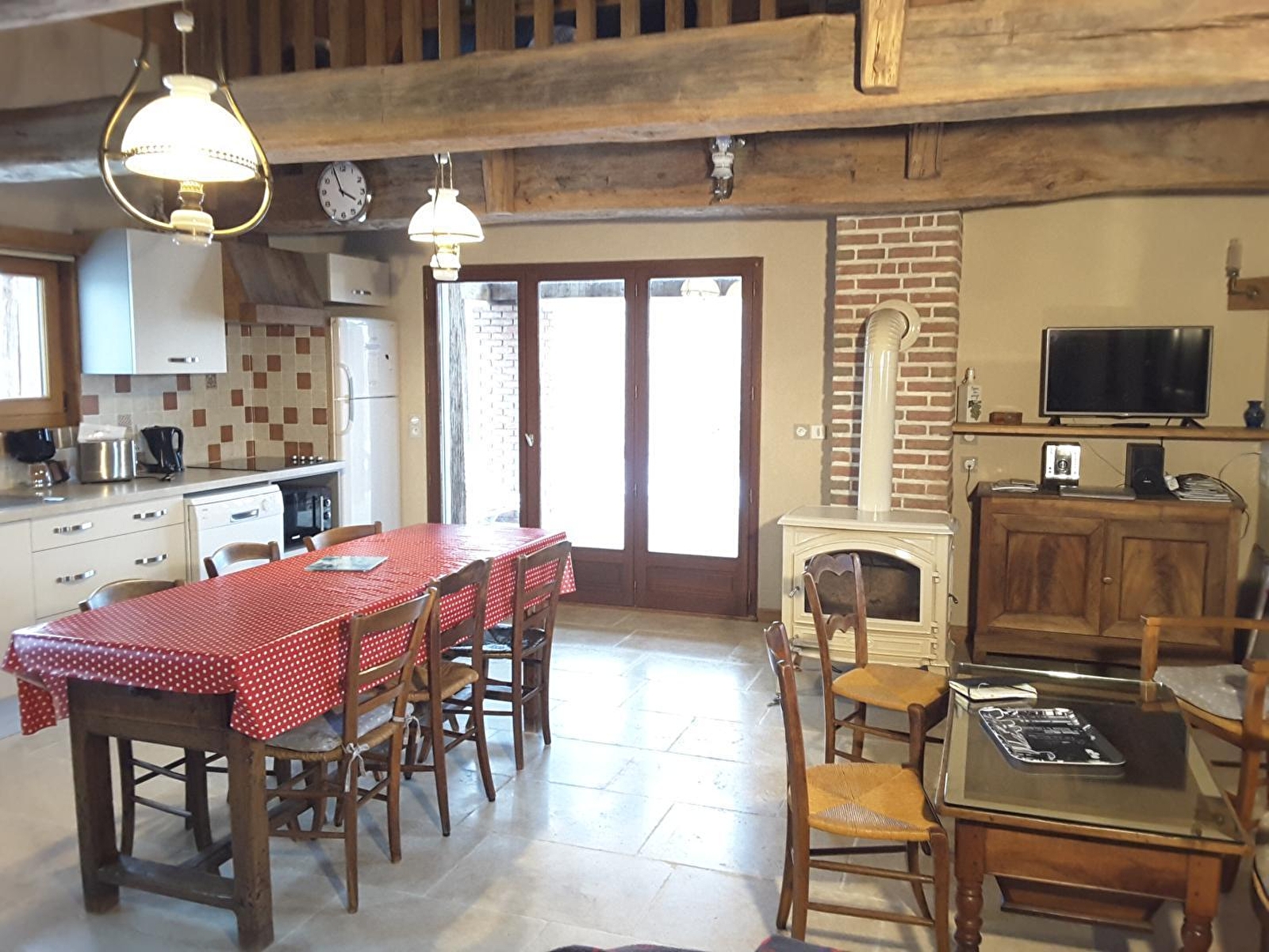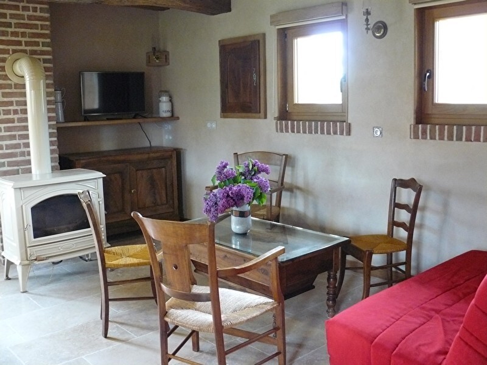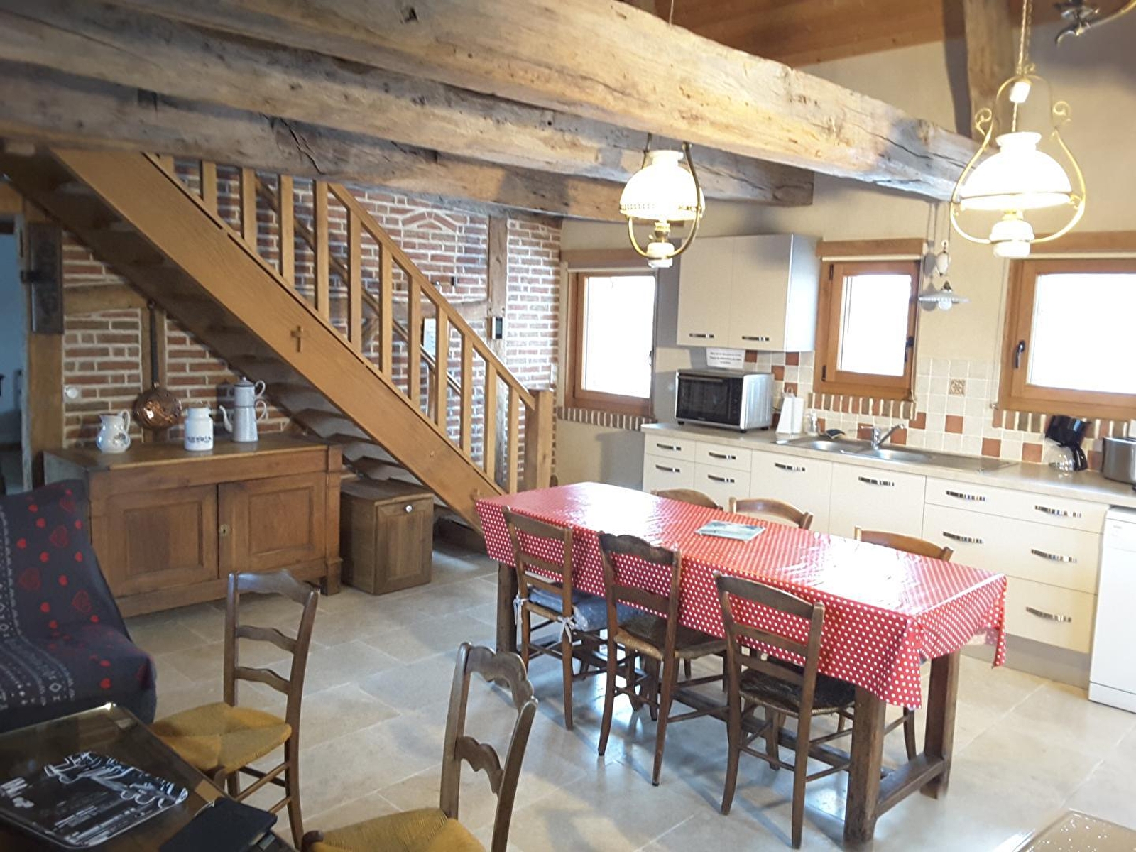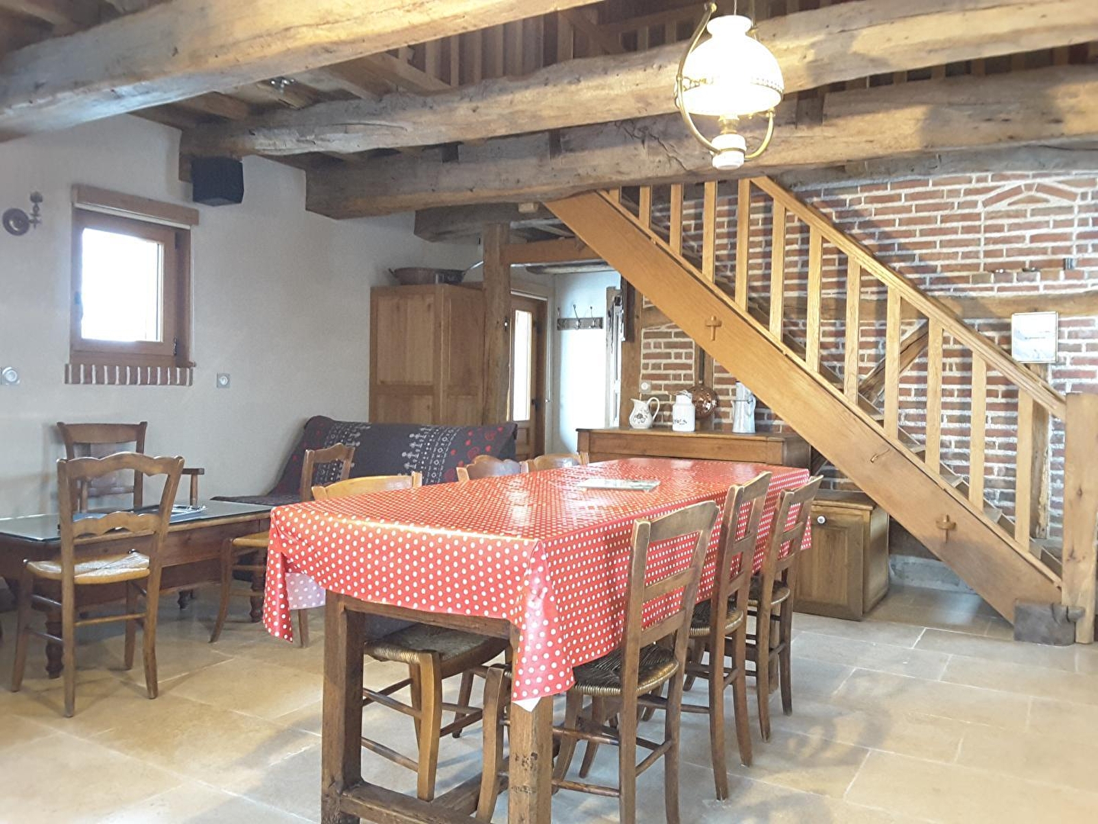 Belle maison indépendante de type Bressane, située à quelques kilomètres de Dole, pays de Pasteur. Le gîte, entièrement aménagé par François et Martine, dispose d'une belle pièce à vivre avec salon (poêle à bois), salle à manger et cuisine. Une 1ère chambre au RDC avec 1 lit 2 pl et 1 lit 1 pl, salle d'eau avec douche, 1 wc indépendant. A l'étage : un espace mezzanine avec un coin salon (canapé convertible), 1 chambre avec 1 lit 2 pl, une 2ème chambre avec 1 lit bateau (100x180) et 1 lit 1 pl, salle de bain (baignoire à bulles, wc). Terrain attenant semi clos avec grande terrasse abritée, four à pain, salon de jardin et barbecue. Vélos à disposition : se renseigner auprès des propriétaires. Les chiens sont admis mais ne doivent pas monter à l'étage, ni divaguer dans la propriété. Possibilité de personnes supplémentaires (contacter le propriétaire). Au delà de 6 personnes 10€/jour/personne supplémentaire. Pour toute demande de séjour pour des raisons professionnelles l'accord du propriétaire est obligatoire. Baignade possible en rivière à 500 mètres.