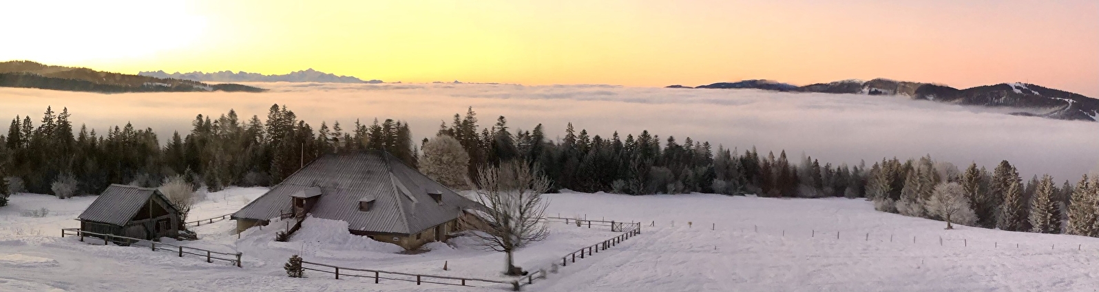 Là-haut sur la montagne du Jura franco-suisse, en pleine nature, grand chalet d'alpage joliment rénové avec confort pour 8 à 22 pers (8 chambres de 1 à 4 lits). Superbe vue sur les sommets du Jura, des alpes et le Mont Blanc. Zénitude et dépaysement garantis pour familles, clubs, stages, séminaires...