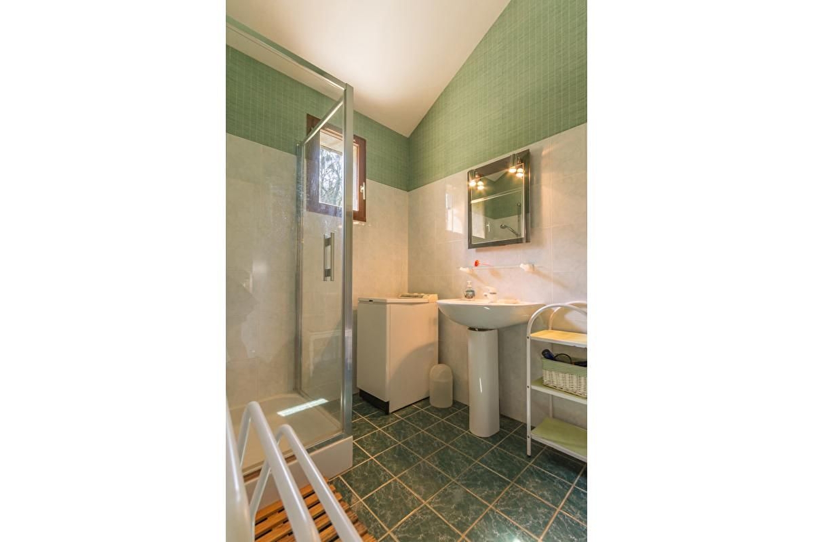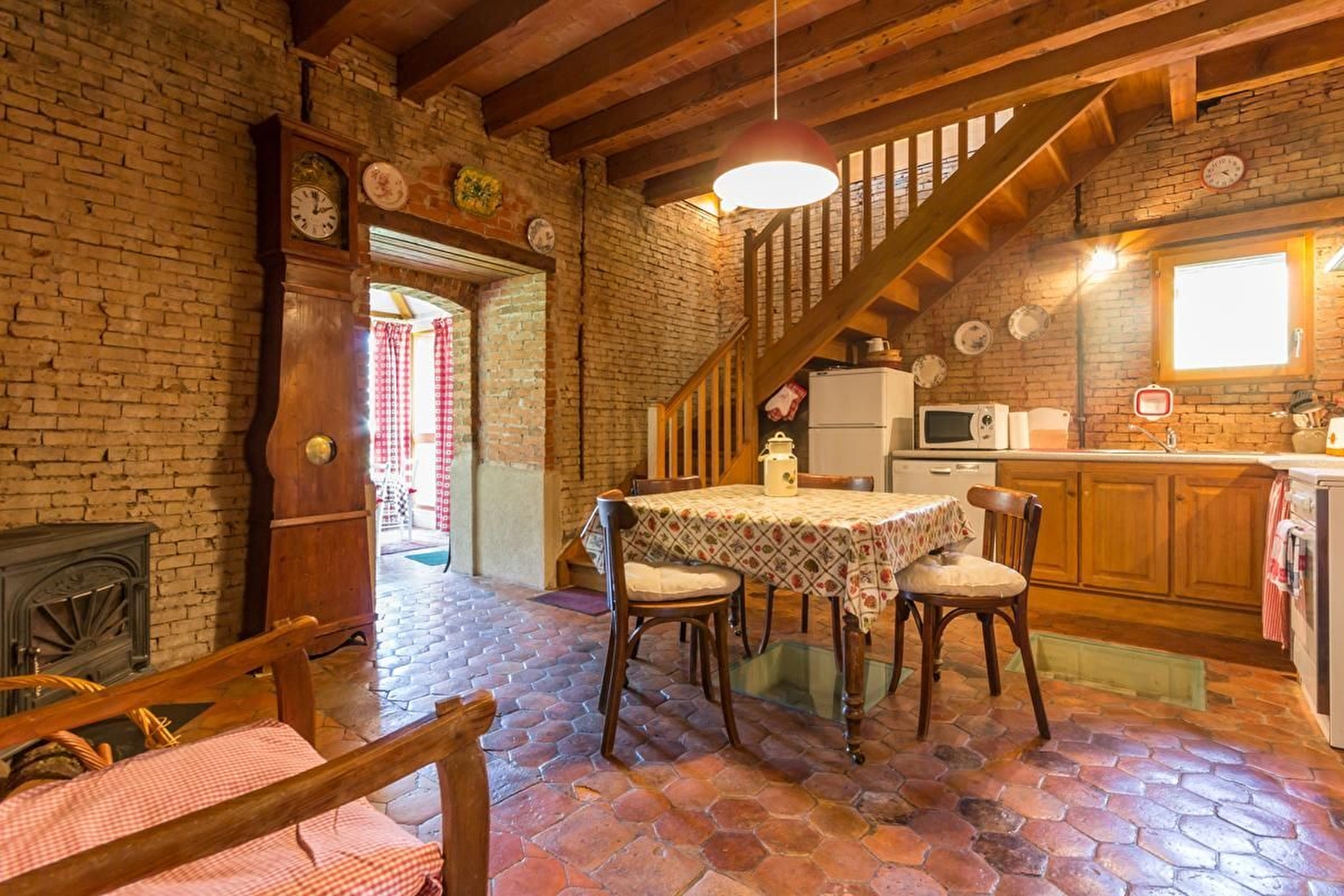 Rez-de-chaussée et 1er étage. Cuisine-salle à manger. Séjour lumineux. 2 chambres, 1 lit 140 pour l'une et 3 lits 90 dont 2 jumelables pour l'autre. Salle d'eau. WC. Chauffage électrique et poêle à bois. Jardin de 200 m². Chaise haute. 4G.