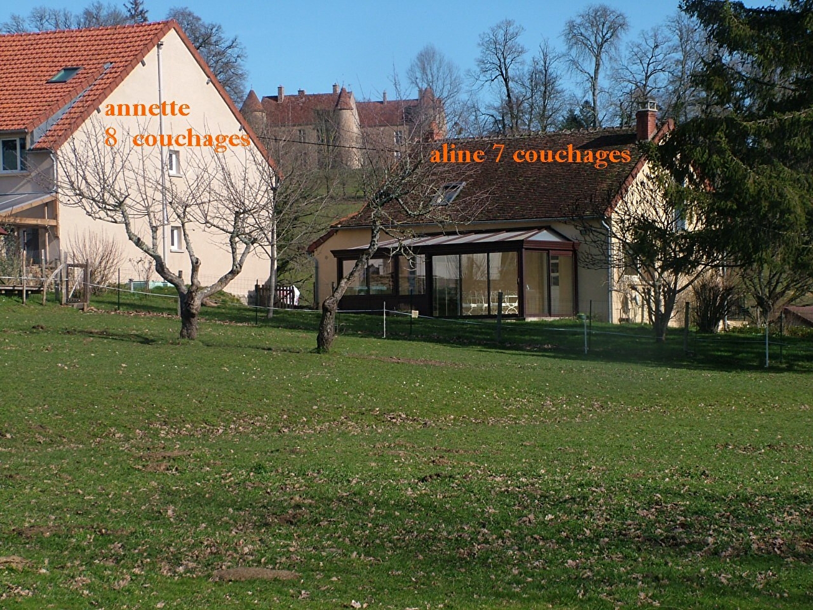Maison individuelle de 155 m2 comprenant: salon, grande pièce à vivre attenante à une pergola, cuisine ouverte, WC. A l'étage, 4 chambres , salle d'eau, WC. Sa situation dans le cadre magnifique d'un château à l'allure féodale vous transportera hors du temps. Sur place nombreux équipements de loisirs: salle cinéma aménagée dans une authentique cave voutée, salle bien être (spa, sauna japonais), salle de jeux (baby foot, tennis de table), grill finlandais, terrain de pétanque, plan d'eau, ânes. La proximité de deux autres gîtes sur place permet l'accueil de groupe (17 personnes). Ambiance montagnarde et bain vivifiant de chlorophylle assurés!!