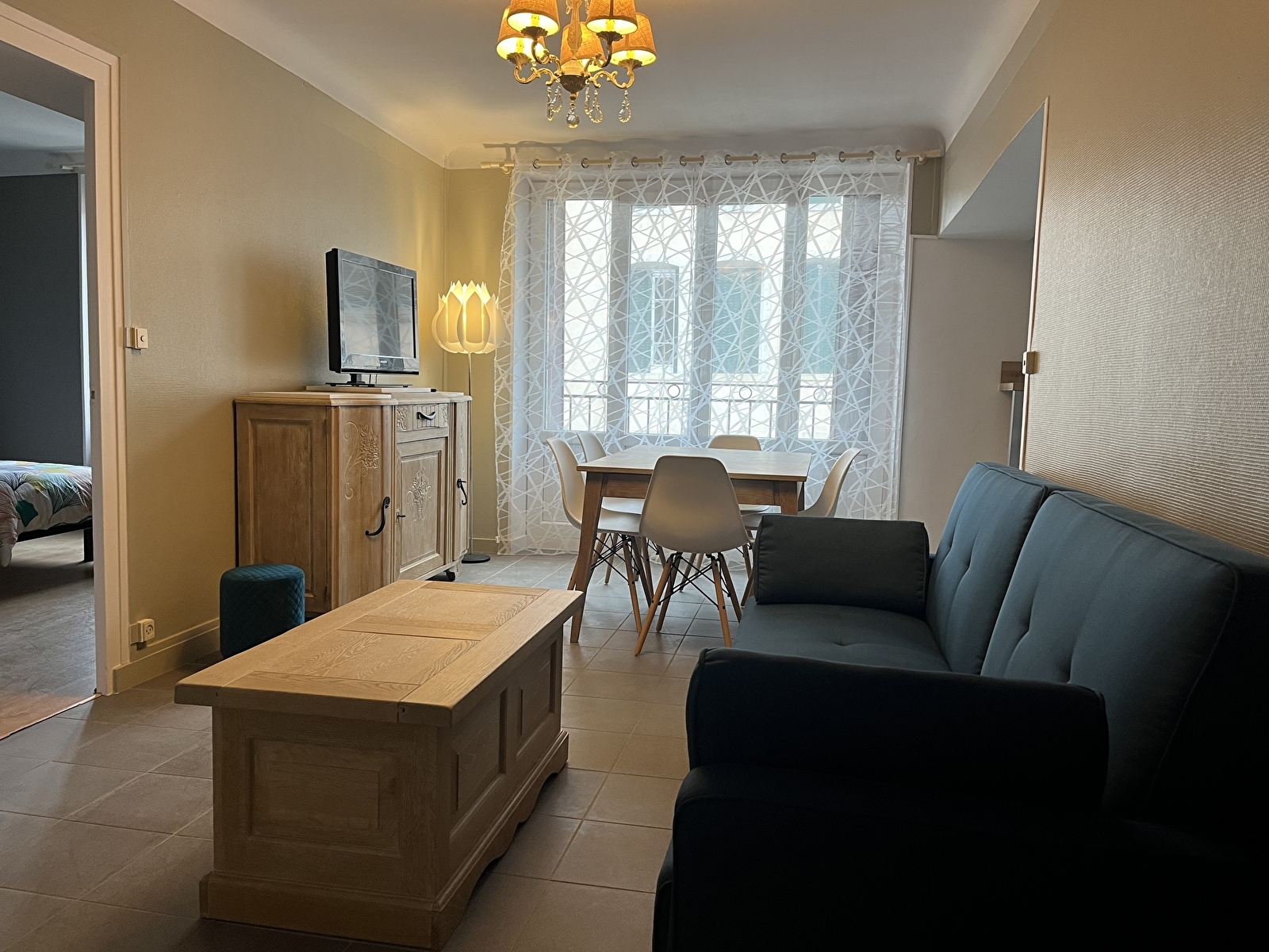 L'appartement est situé au centre ville dans une rue comprenant tous les commerces nécessaires (boulangeries, boucherie, restaurant, pharmacie, banques...).
