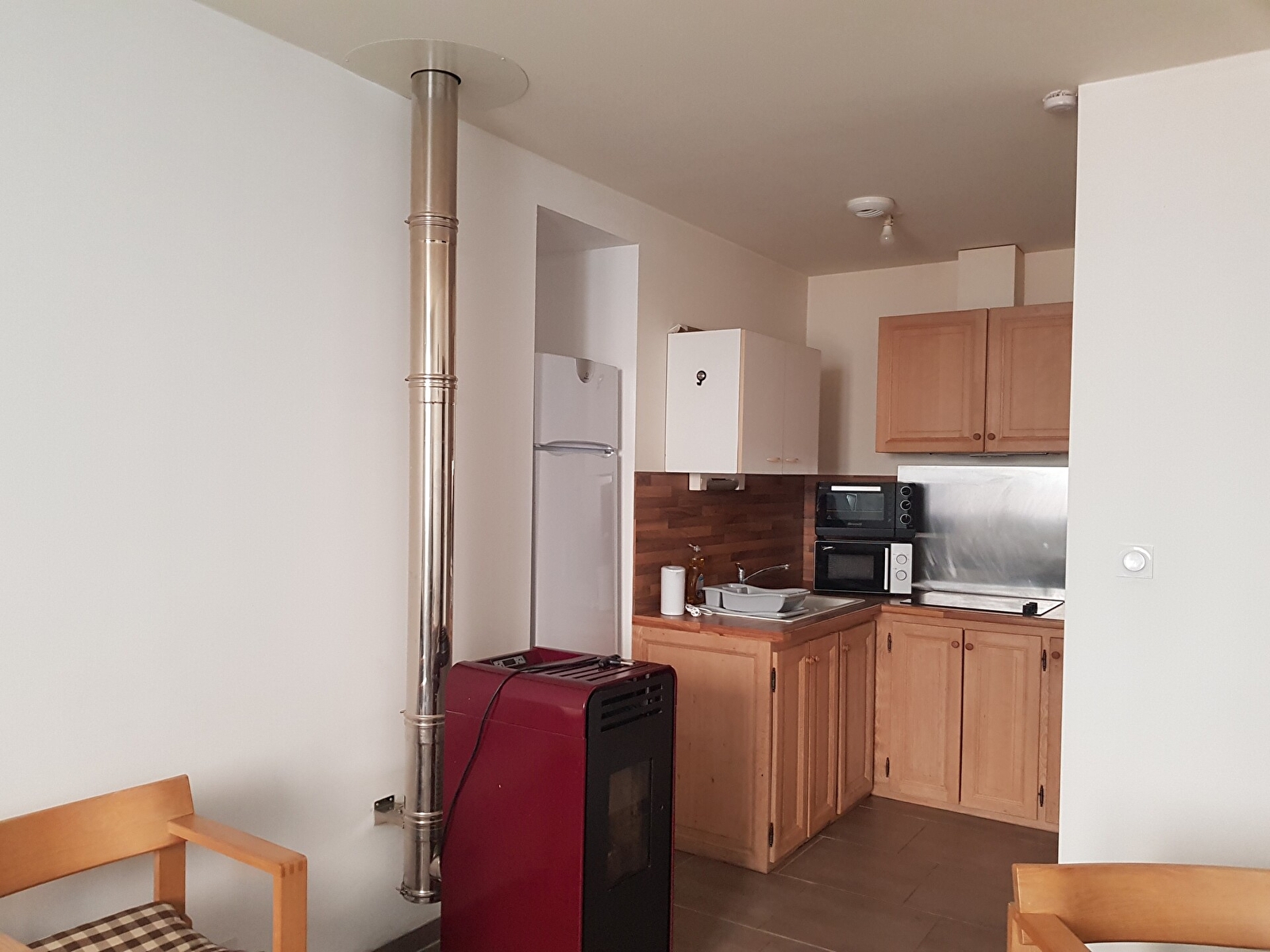 Il est composé d'une cuisine ouverte sur le séjour avec canapé , TV, poêle à pellets, une grande chambre avec 1 lit de 140 . Lit est fait à l'arrivée.