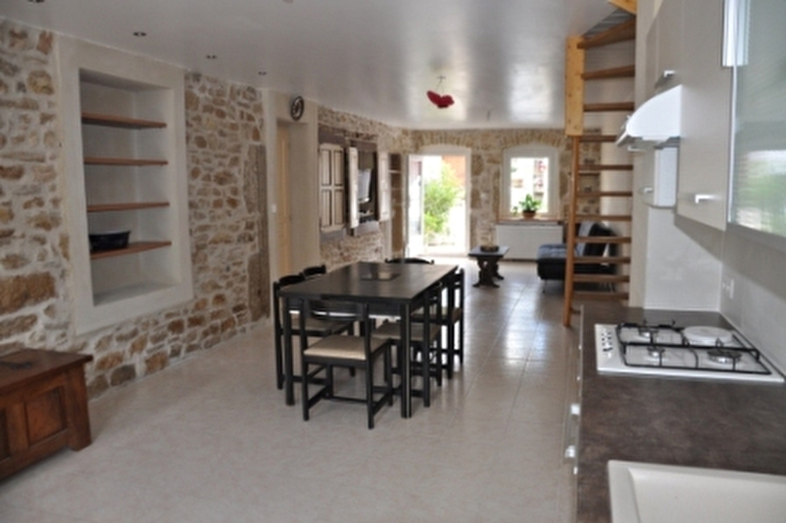 Situé dans le centre du village (calme). 1 chambre avec 1 lit 2 places, 1 chambres avec 2 lits 1 place + mezzanine 1 place. 1 lit appoint dans le salon.