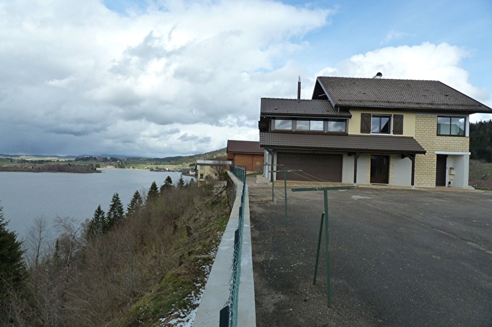 A l'extérieur : cour, terrain attenant non clos offrant une magnifique vue sur le lac de l'Abbaye, salon de jardin et barbecue.