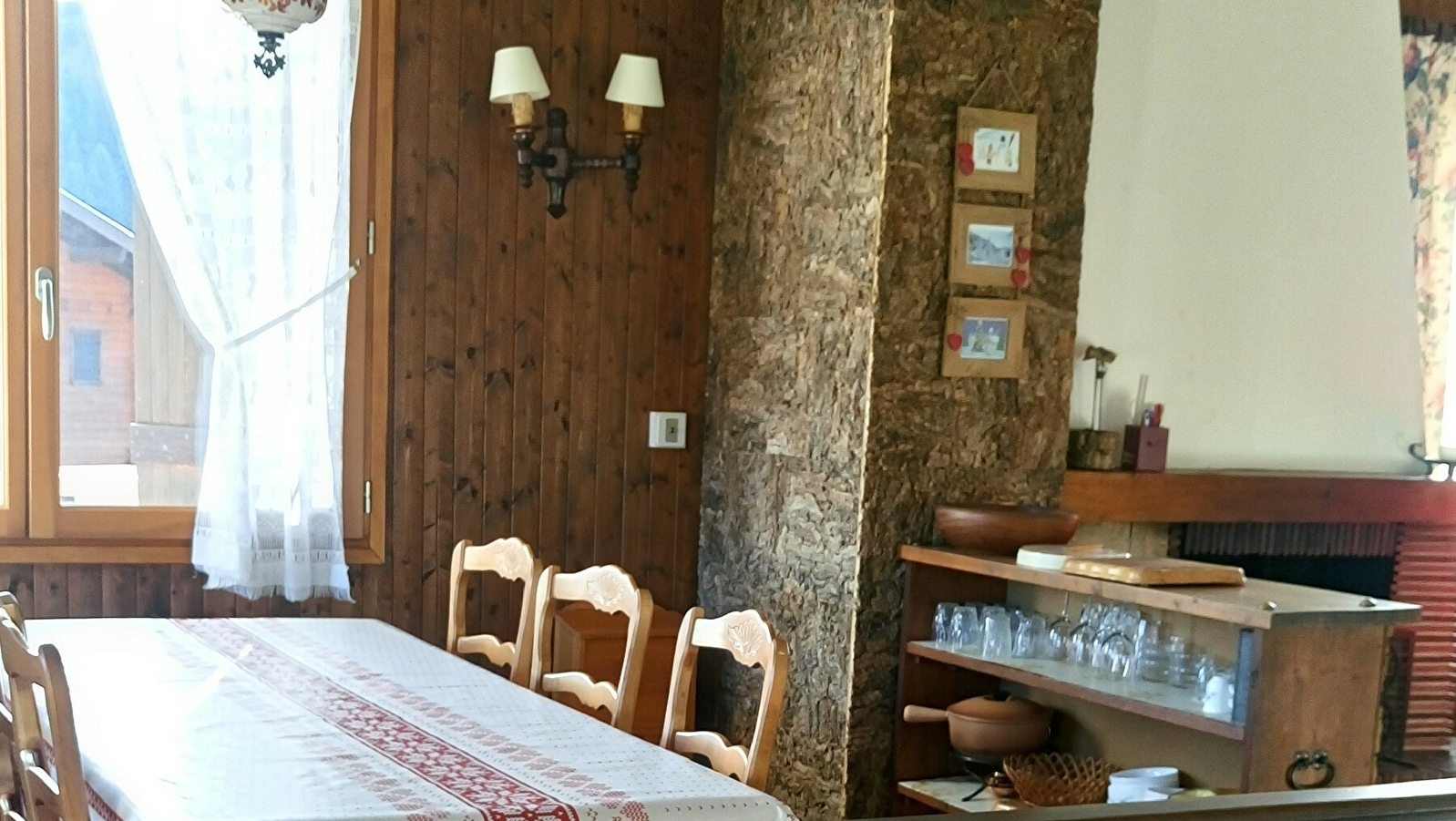 Appartement 1er étage. Chalet très lumineux, vue sur la Combe du Lac, comportant 2 chambres, 1 grand séjour, cuisine avec cheminée, balcon, 1 salle de bain, 1 wc.