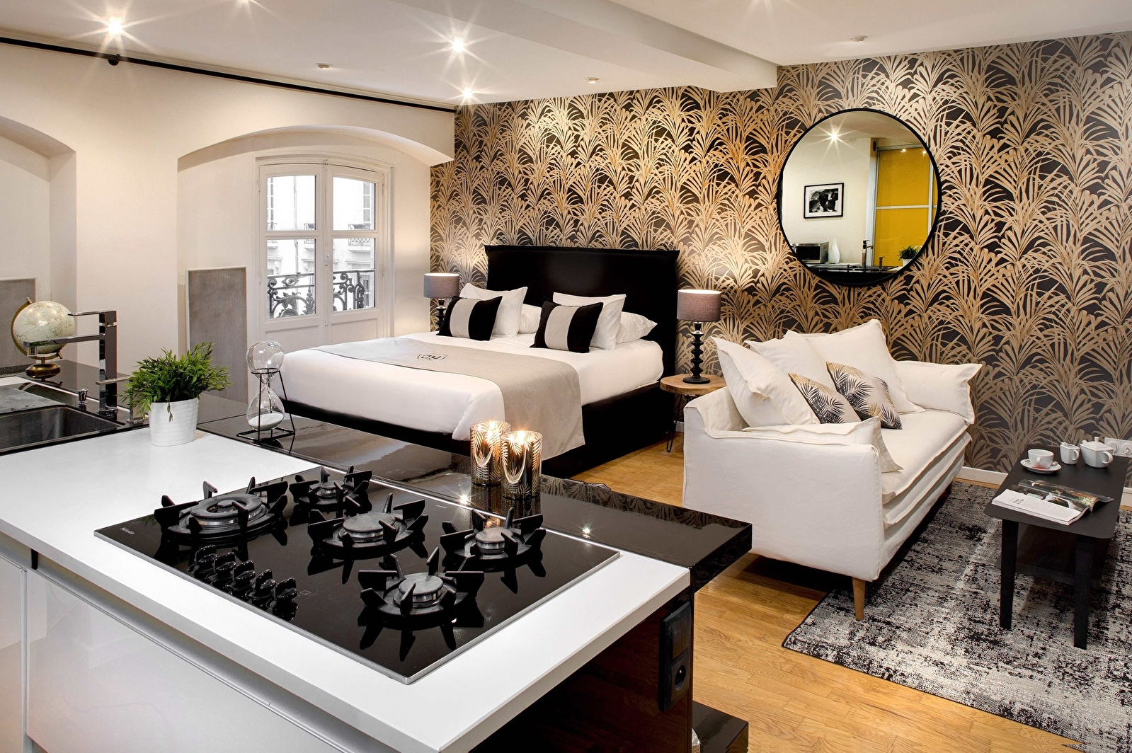 - 1 grande chambre avec un lit double de 180x200 cm, une cuisine entièrement équipée, une petite table à manger et un coin télévision