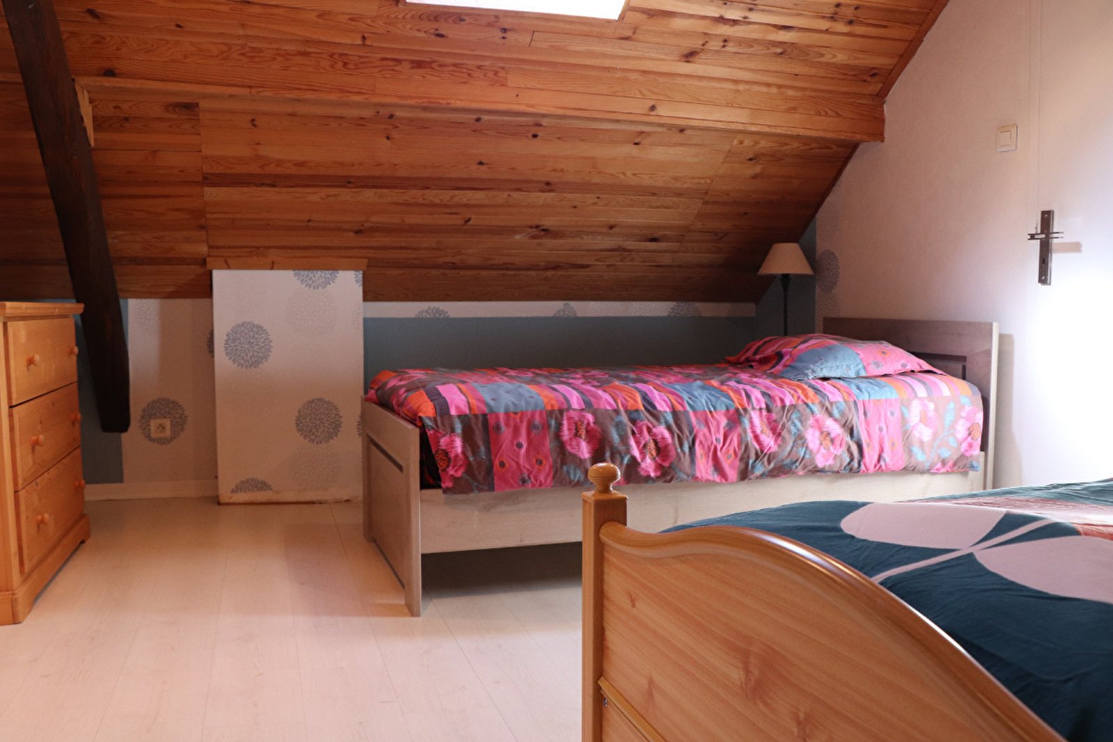 A droite du salon, vous trouverez une première chambre avec un lit en 140cm, de l'autre côté, une chambre avec deux lits de 90cm.