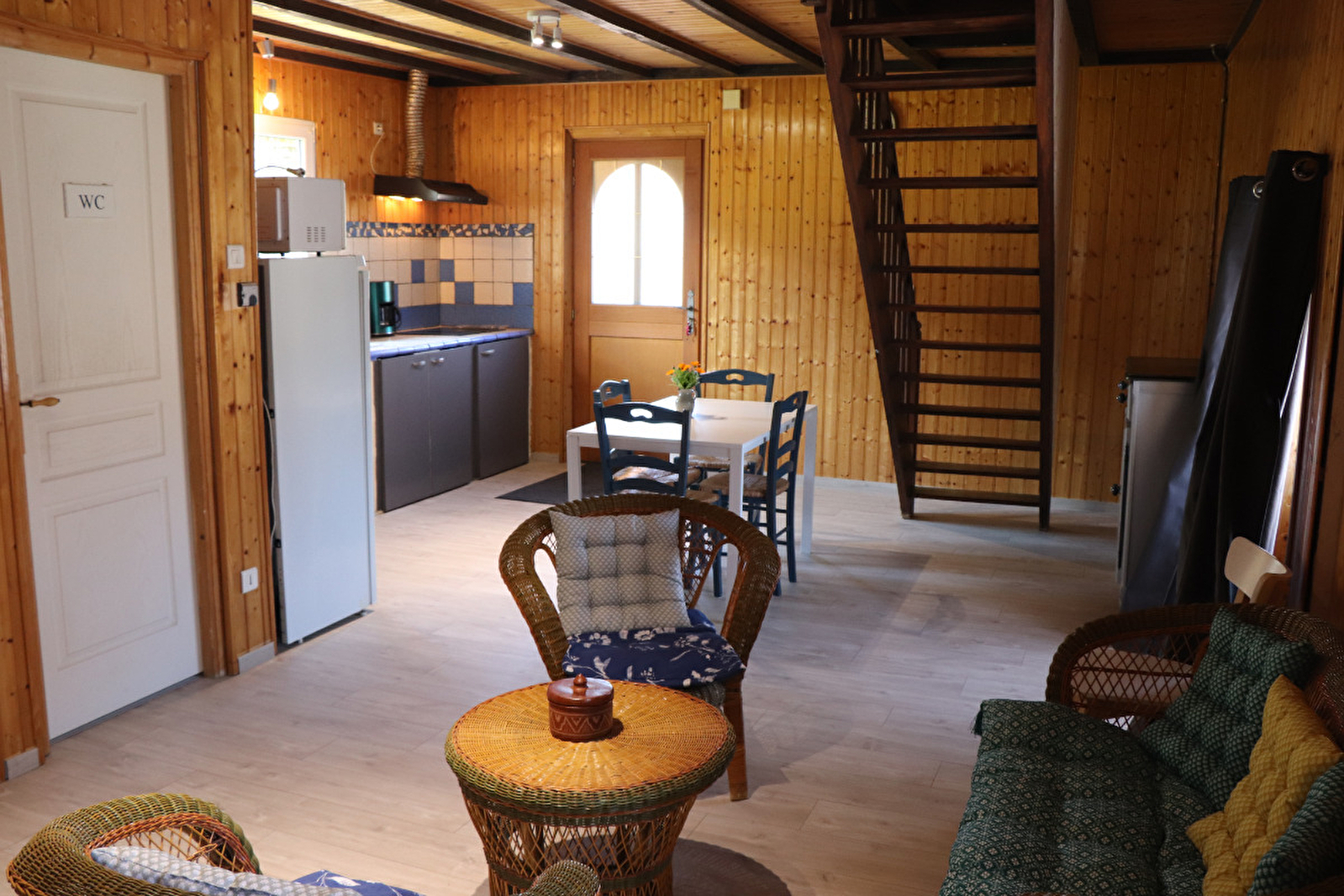 Les couchages se trouvent au 2ème étage. L'accès se fait par un escalier qui donne sur le salon de l'appartement. Idéal pour les moments en famille autour d'un jeu de société ou d'un film DVD à la télévision. Celle-ci est mise à disposition avec possibilité de brancher une clé USB et lecteur DVD mais pas de câble TNT. Il est possible d'accueillir une personne supplémentaire sur le canapé BZ.