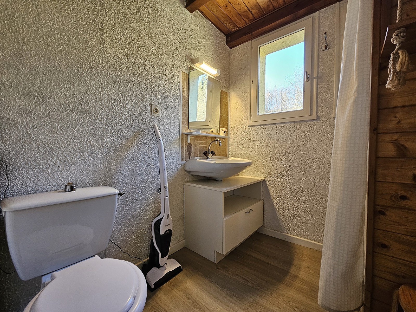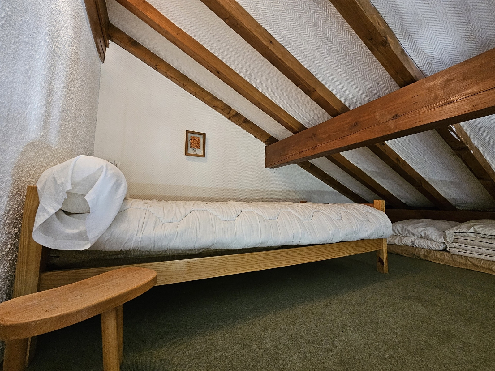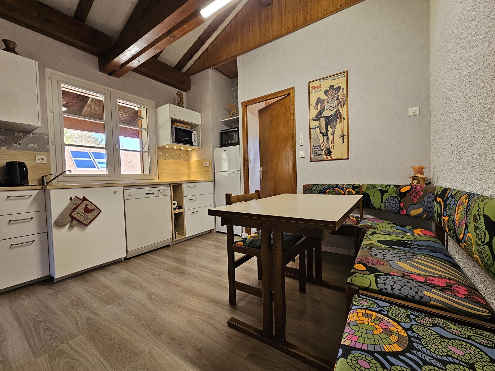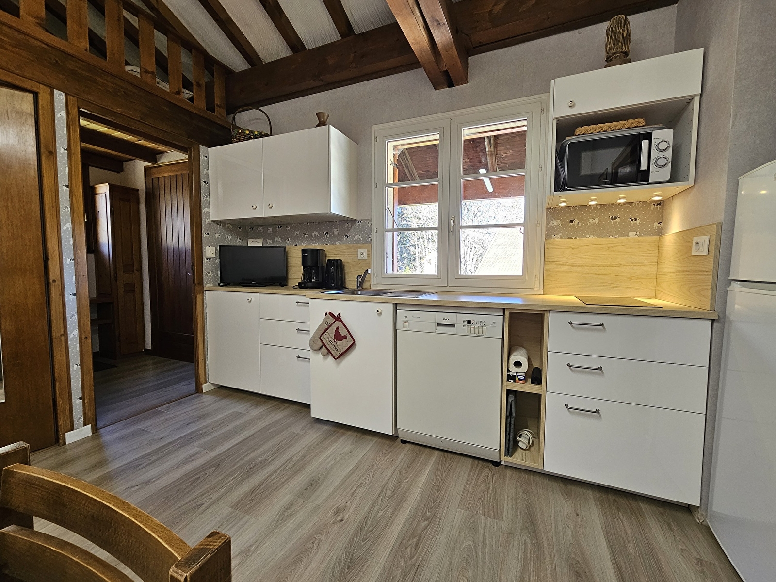 Cet appartement de 30m2 dans un chalet de propriétaire avec son entrée indépendante, un coin cuisine et pièce principal avec coin repas, 1 chambre avec un lit en 140 et un lit en 90 enfin une mezzanine avec échelle de meunier où se trouve un lit en 90 complète le tout.