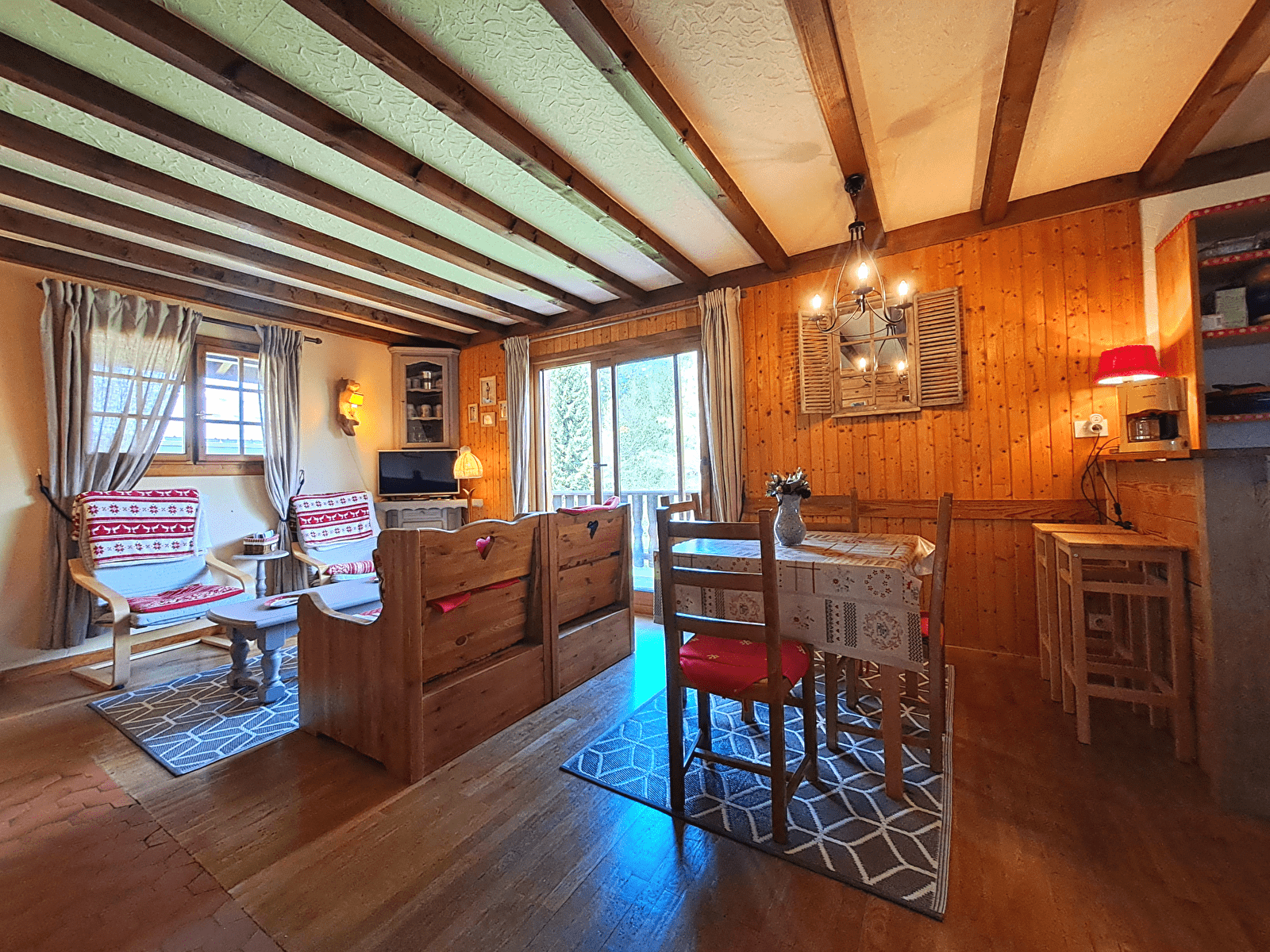 Appartement de bon confort bien équipé en chalet proche des départs des pistes de ski alpin.