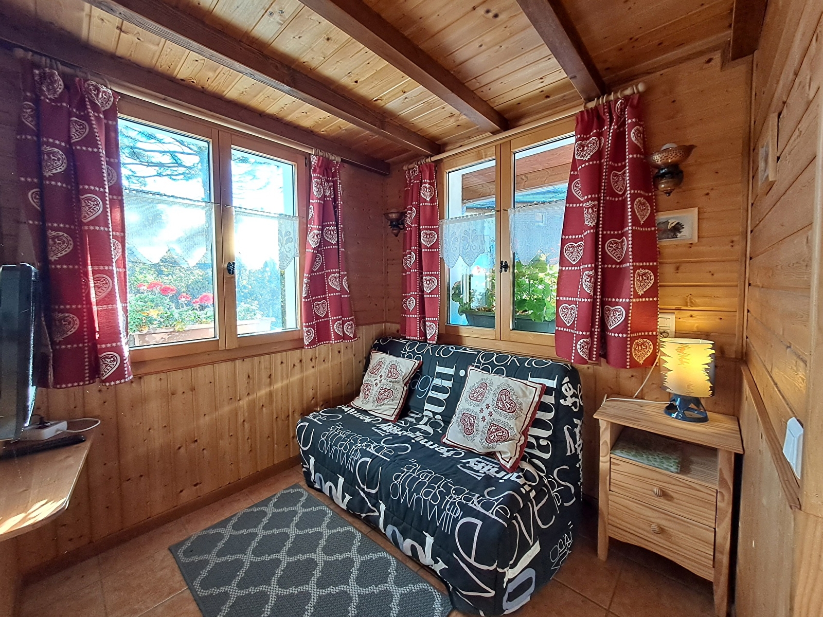 Situé dans le chalet des propriétaires, cet appartement de 34m² au rez-de-chaussée est composé d’une pièce principale avec coin cuisine/repas, canapé lit BZ. Une chambre indépendante avec lit de 140cm. Salle d’eau et WC. Un accès extérieur sur terrain attenant non clos complète le tout. Stationnement privée au chalet.