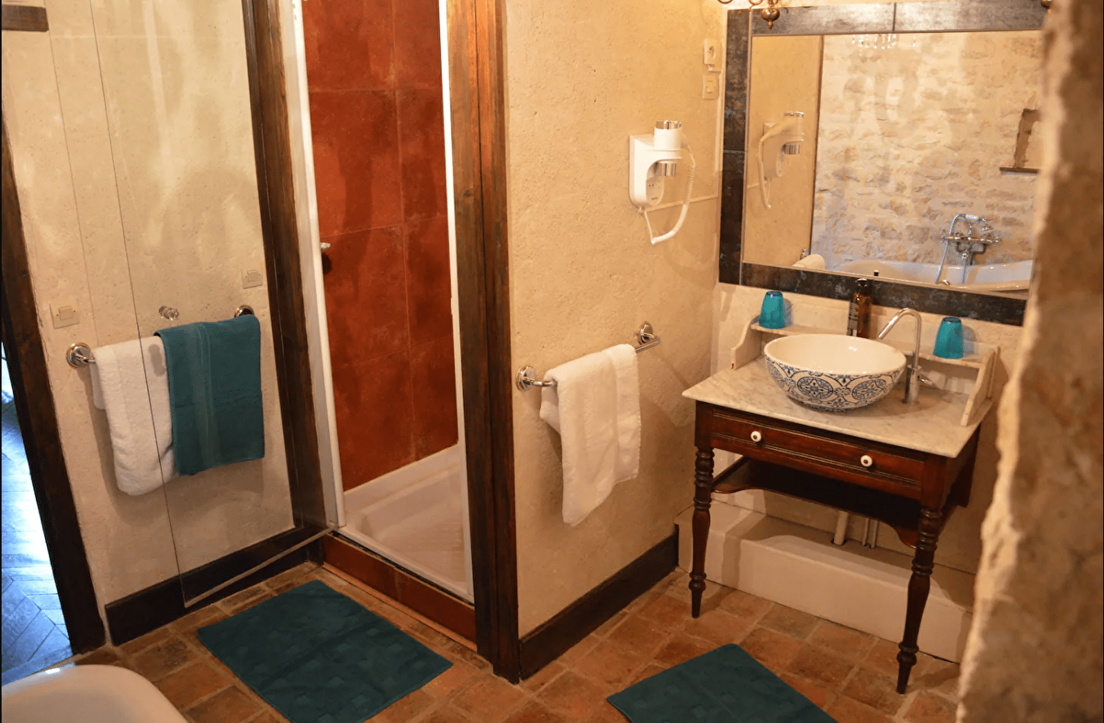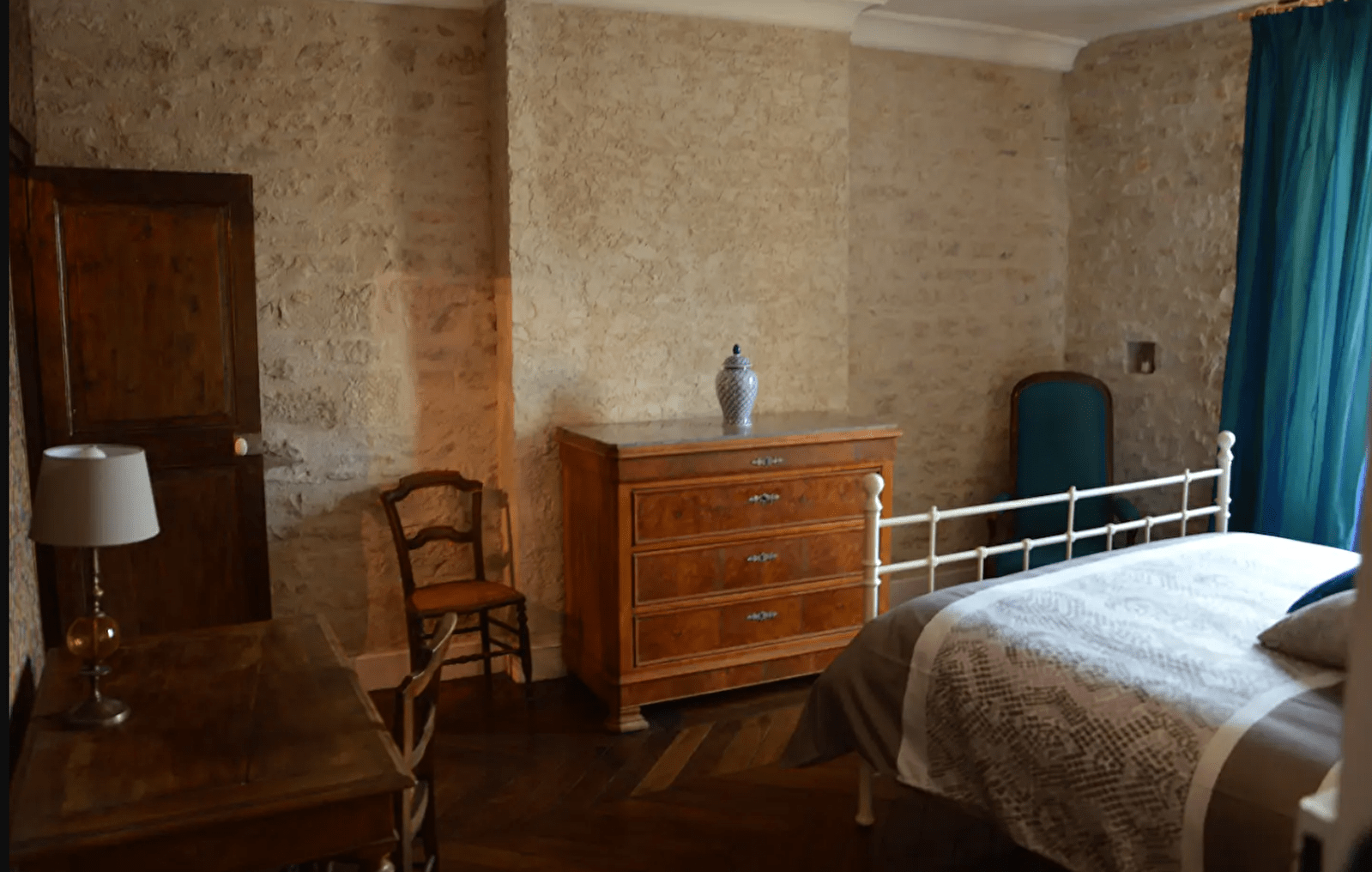 Vous retrouverez le charme de l'ancien: plafonds moulurés, parquet ancien, pierres apparentes.
