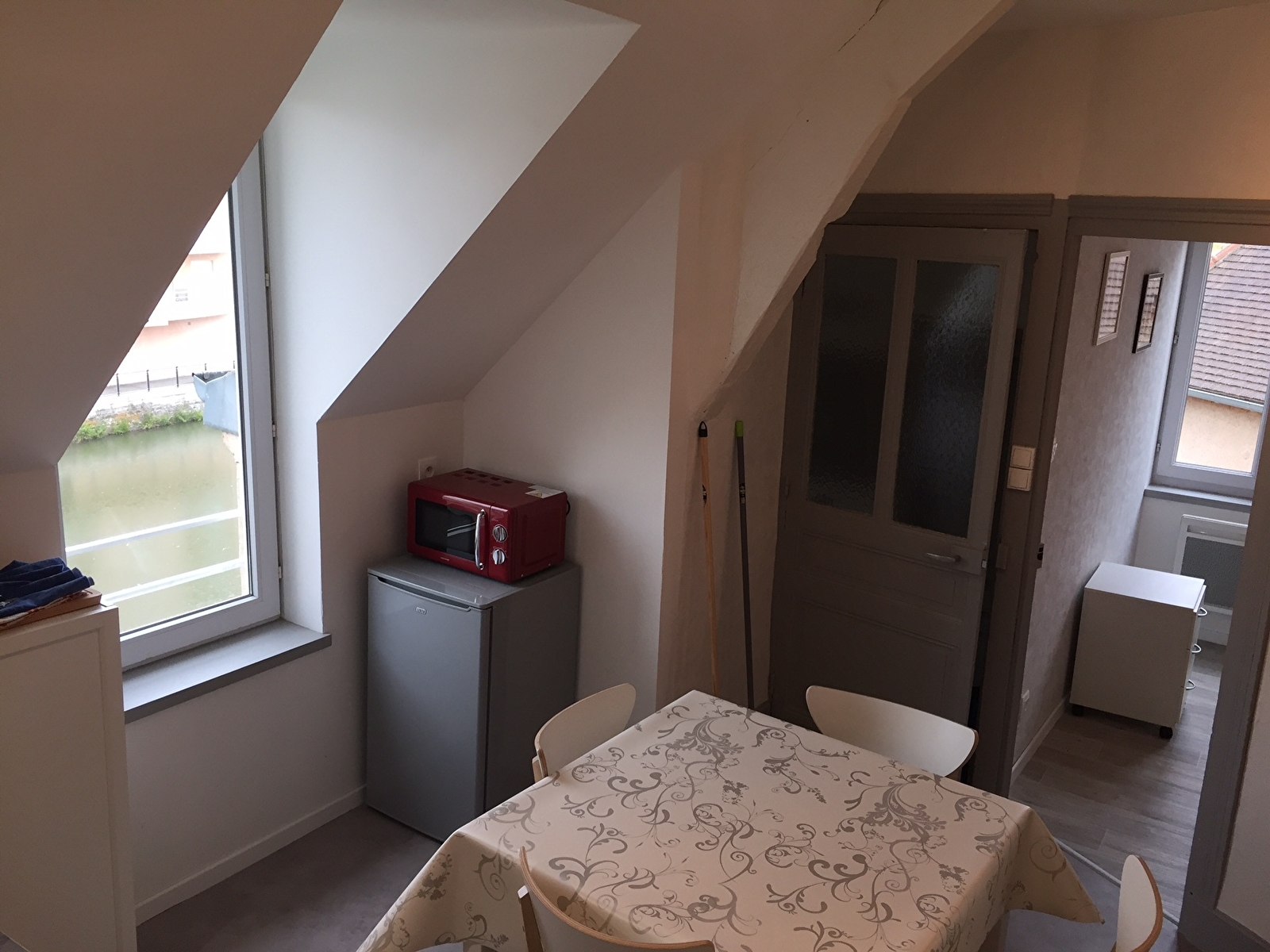 Ce logement, entièrement isolé, se situe au 2ème étage d'un bâtiment de caractère avec une vue imprenable sur la Basilique. Il est situé au bord de la rivière en plein centre ville.