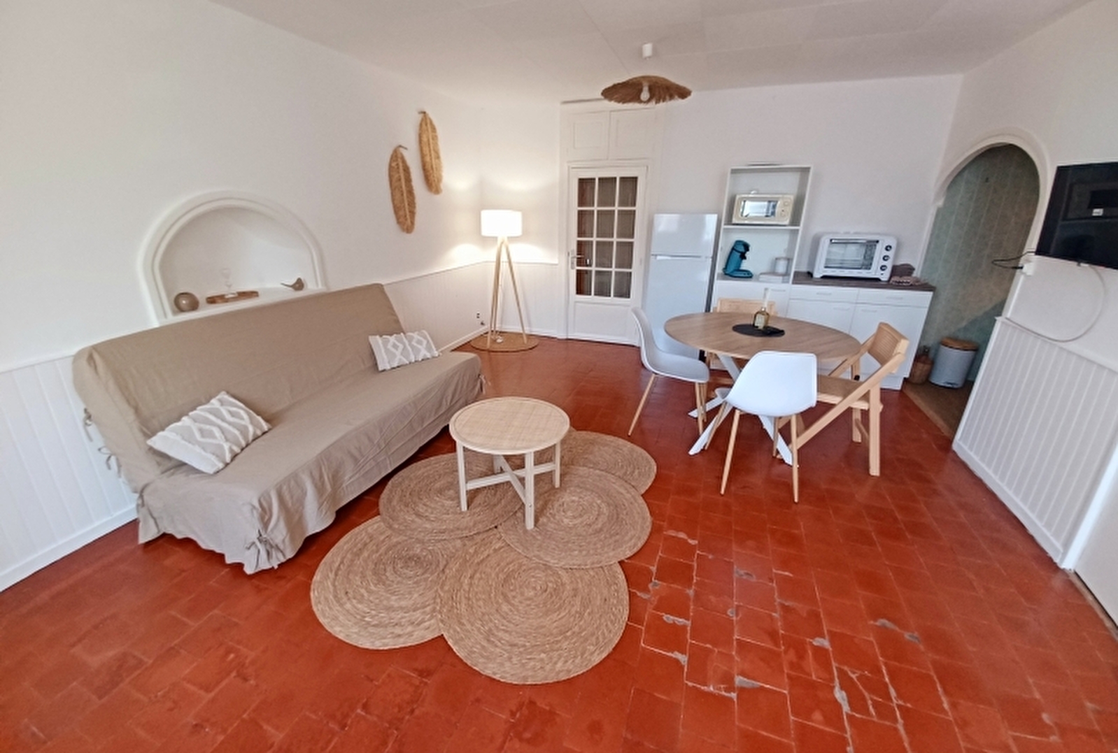 - Grande pièce à vivre centrale avec canapé convertible en lit ( pour 3eme personne), grande Tv HD
