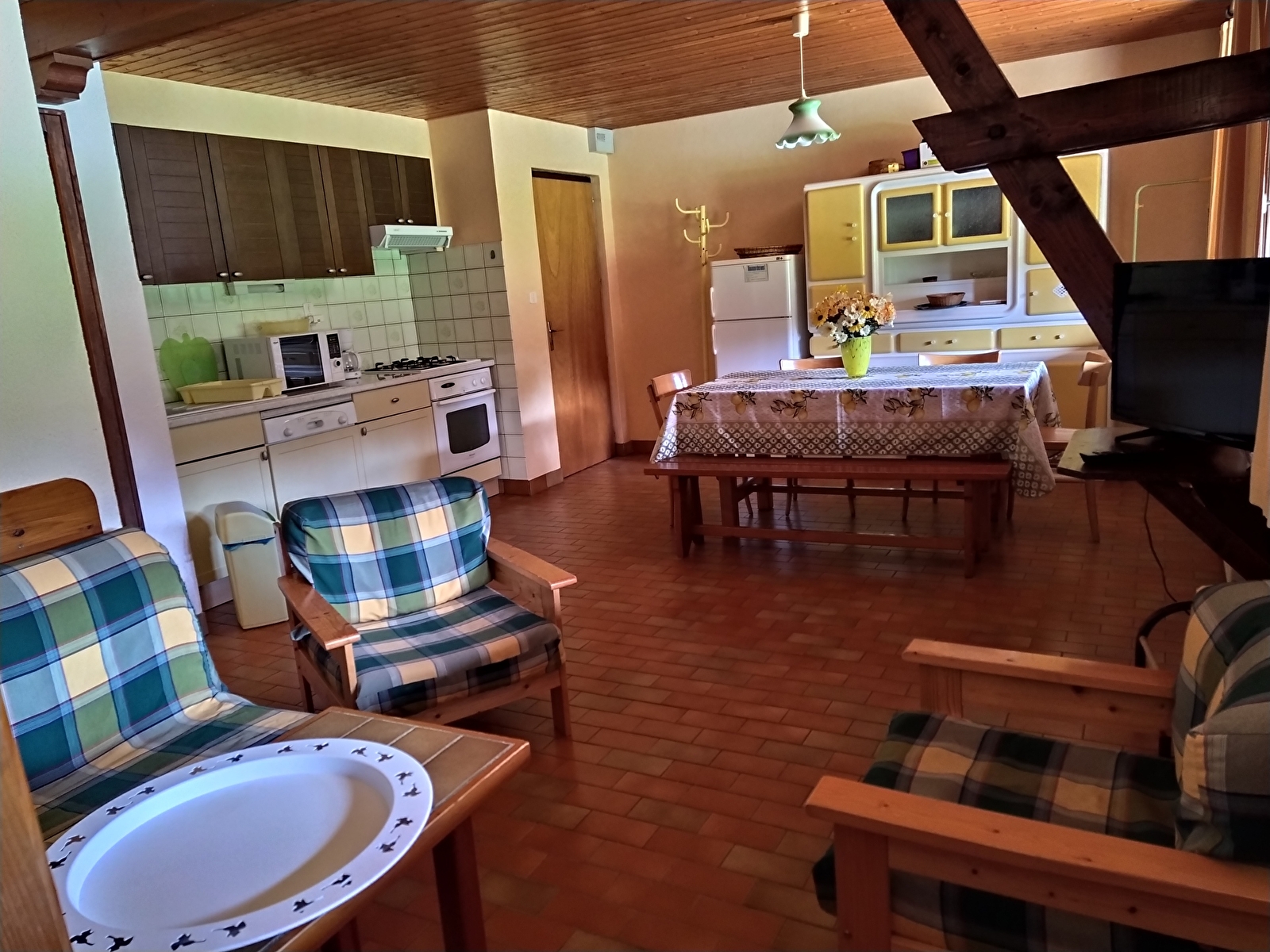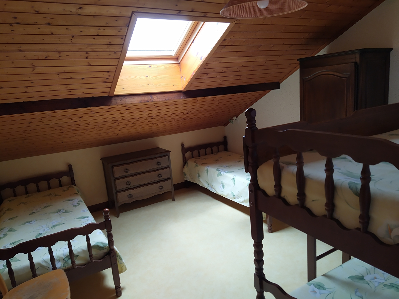 Situé dans une grande maison contenant 5 autres logements, cet appartement de 50m² au 1er étage est composé d’une pièce principale avec coin cuisine/repas, canapé lit BZ et fauteuils. Une première chambre avec lit de 140cm et une seconde avec lits superposés de 90cm et deux lits de 80cm. Salle d’eau et WC indépendant. Un accès extérieur sur grand terrain non clos complète le tout. Stationnement privée à la maison.
