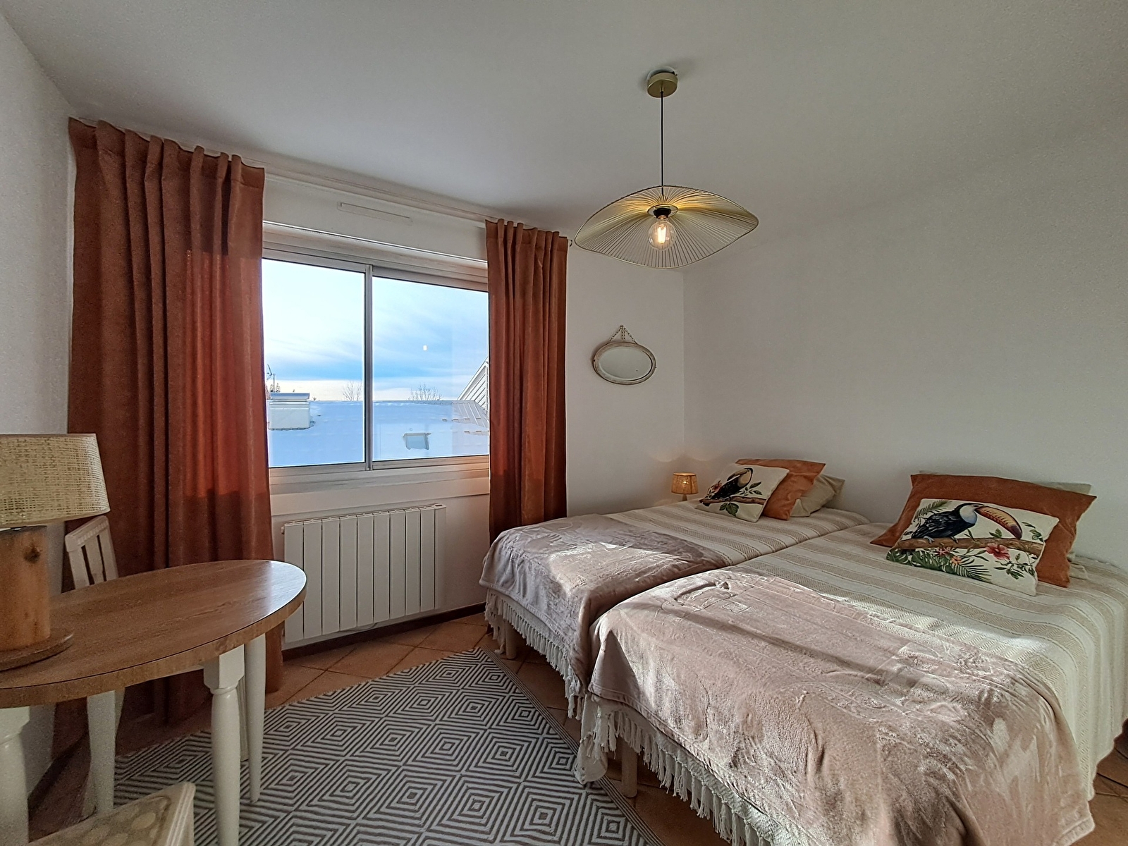 Cet appartement de 62m2 au 1er étage et composé d’un hall d’entrée avec placard de rangement , d’une pièce principale avec canapé bed express d'une cuisine ouverte, d'une chambre avec un lit en 140 et lit en 80cm et une seconde chambre avec 2 lits en 90. Une salle d’eau et un wc indépendant complète le tout.