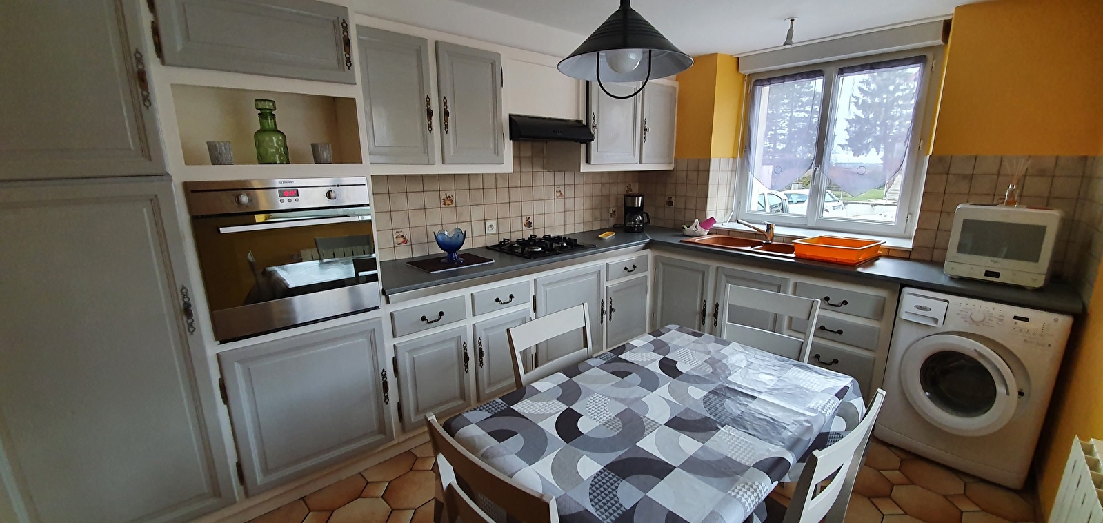 - Cuisine équipée (four micro-onde, four, lave linge, cafetière classique, cafetière Dolce Gusto + les ustensiles de cuisine