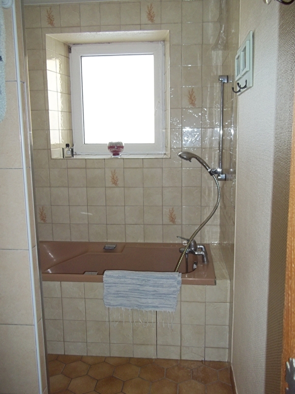 Salle de B avec douche, baignoire (sèche-cheveux)