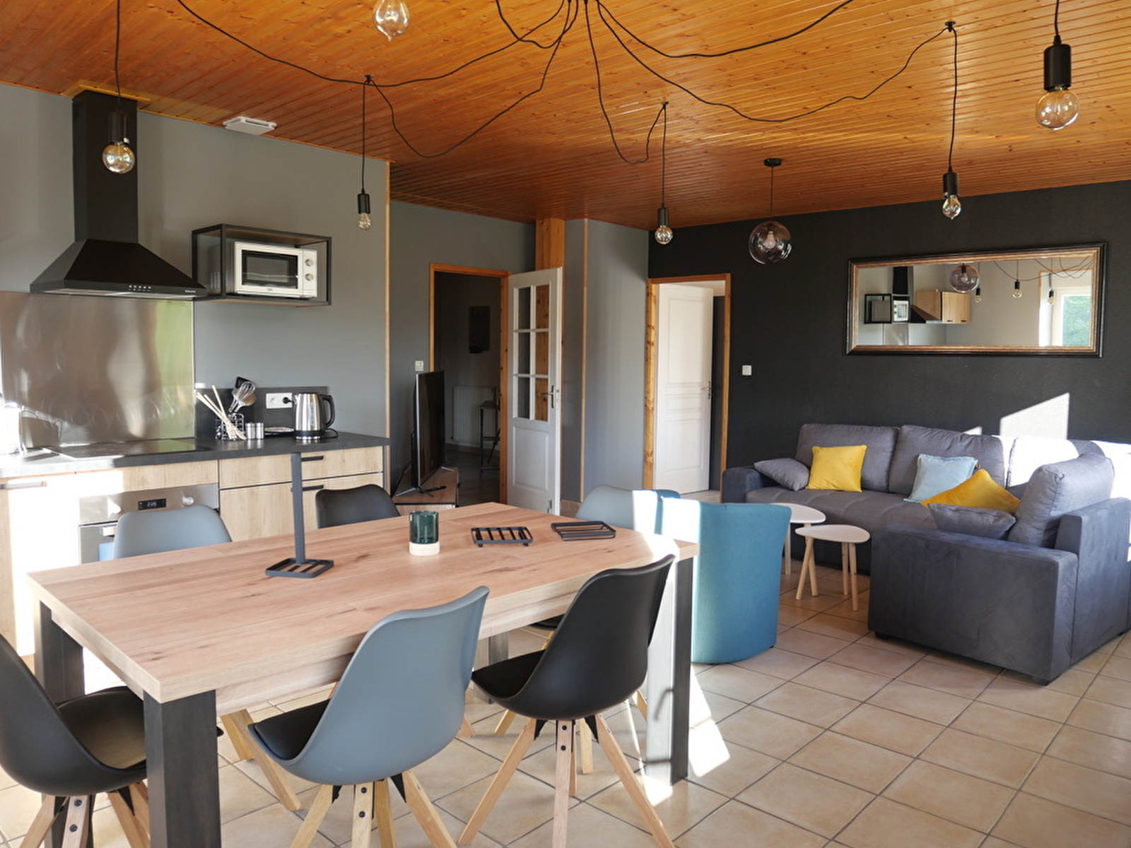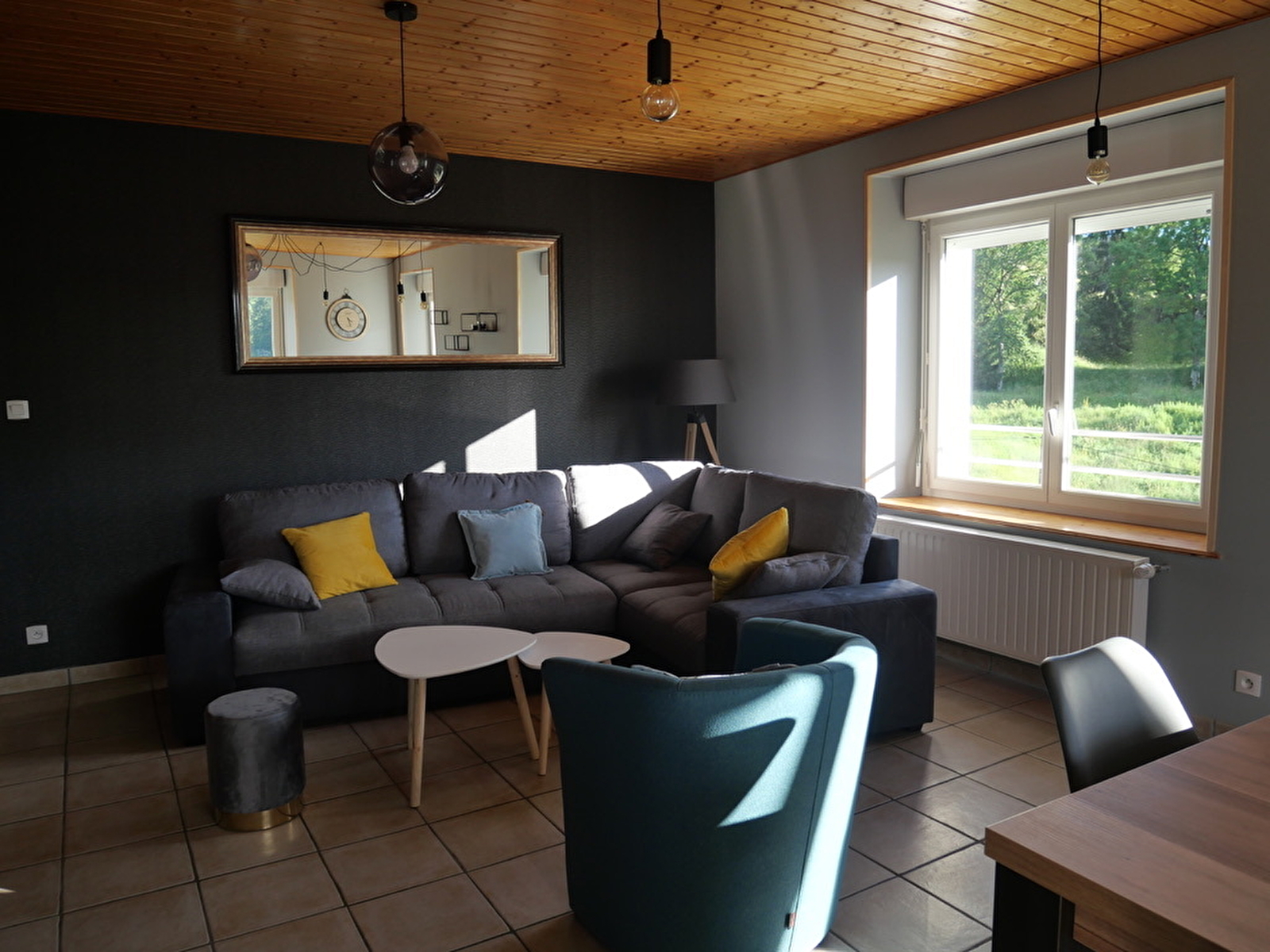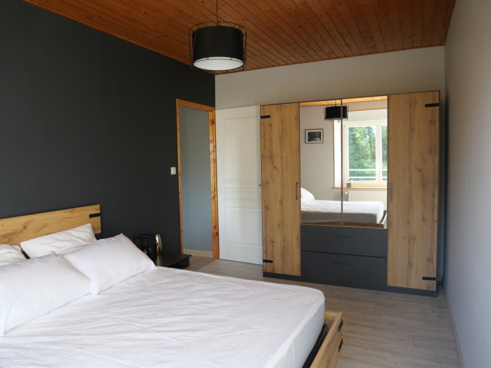 Appartement situé à proximité des pistes de ski fond et alpin dans un lieu calme, proche de la nature. Vous pourrez profiter de la vue sur le château de Joux, face au Larmont.