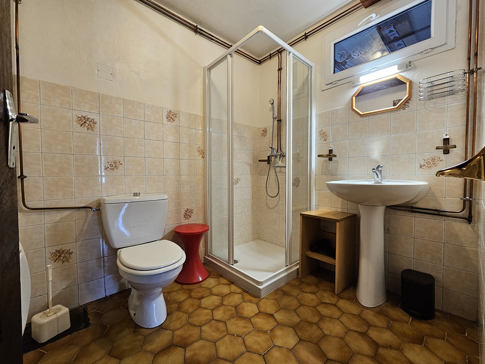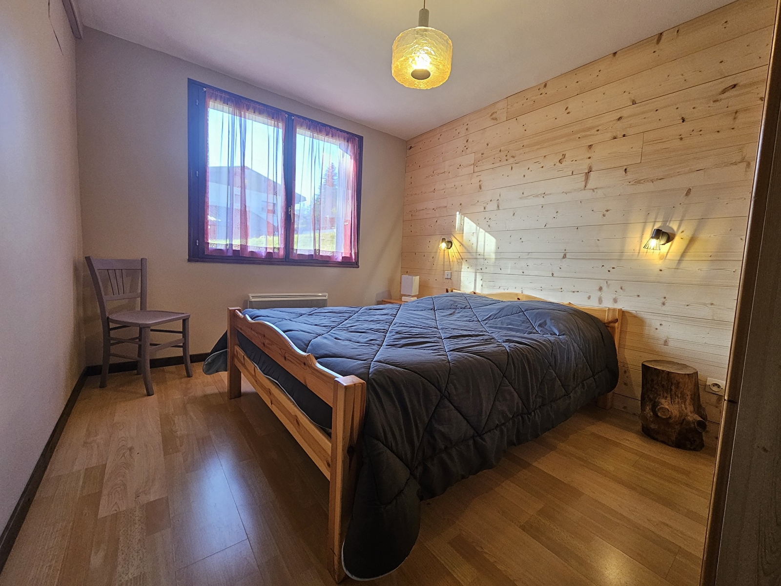 L’espace nuit est composé d’une chambre avec un lit en 140, une salle d’eau avec WC complète le tout.