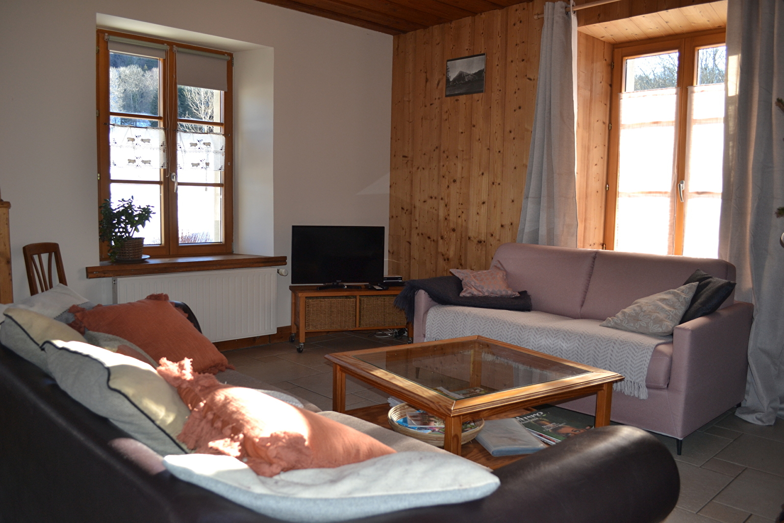 Situé dans notre maison, au cœur de la ferme, avec son entrée totalement indépendante accessible par un pont de grange typique des habitations traditionnelles du Haut-Doubs, il peut accueillir confortablement 5 à 6 personnes grâce à ses 2 grandes chambres et sa vaste et lumineuse pièce de vie.
