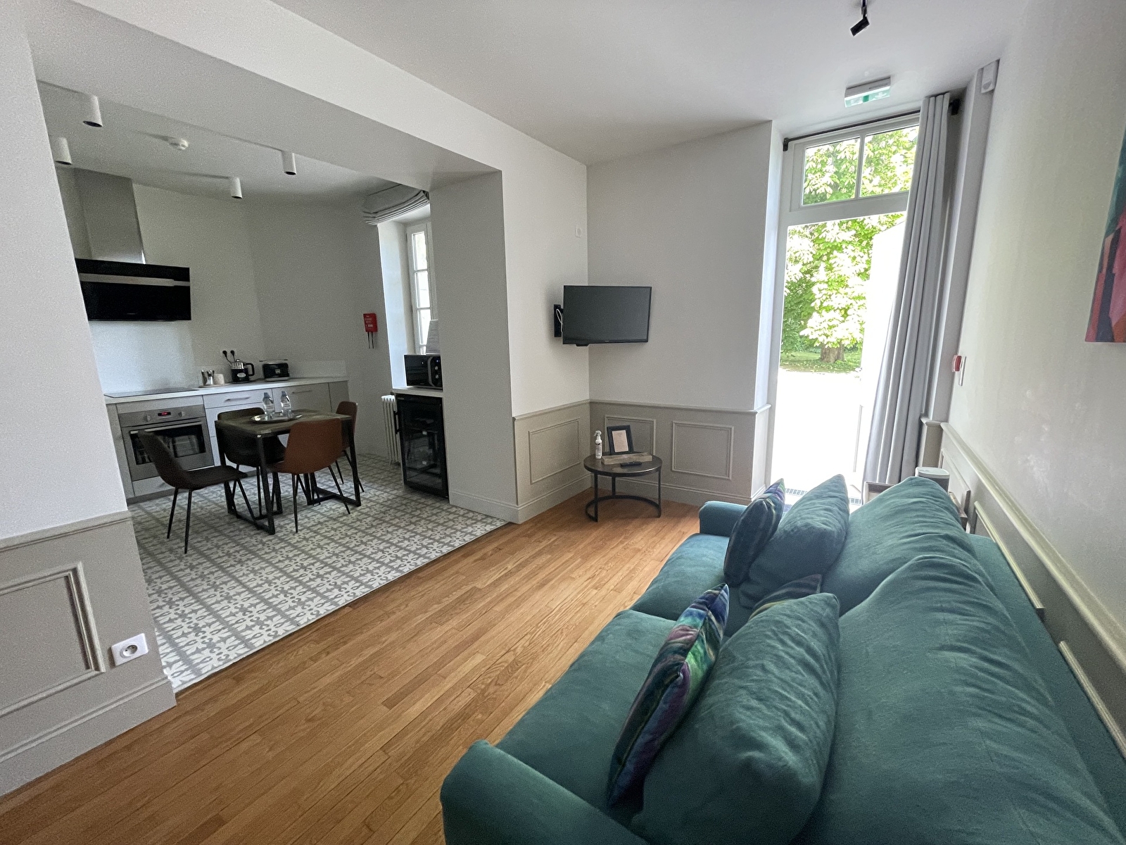 L’appartement Léonce Boquet vous accueille en rez-de-jardin pour un séjour tout confort en Bourgogne viticole. Entièrement accessible aux personnes à mobilité réduite, il offre un espace raffiné de 60 m² pour 2 à 4 personnes, avec chambre confortable, salon lumineux (canapé convertible), cuisine équipée, et salle de bain spacieuse avec douche à l’italienne.