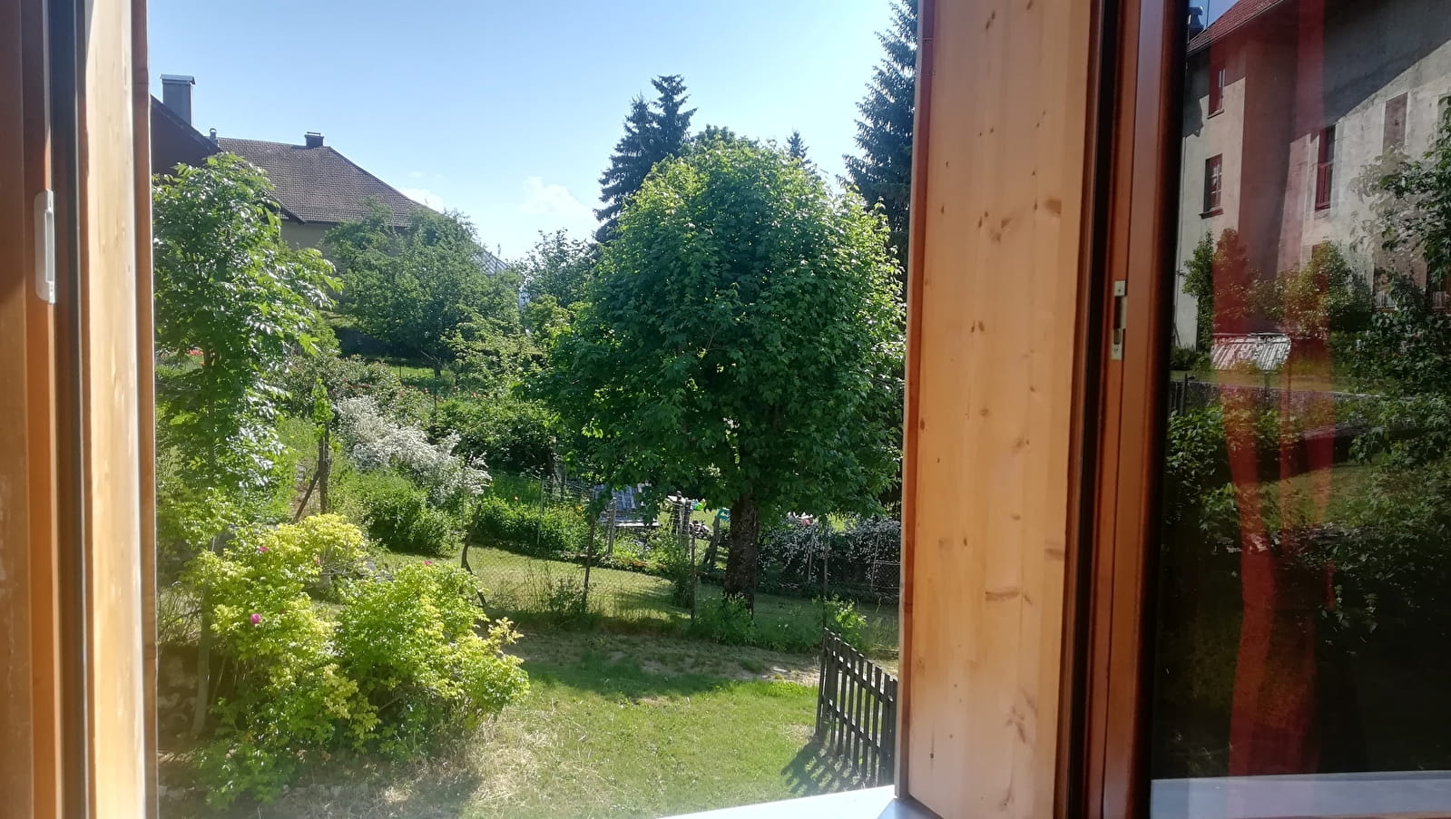 Appartement rénové, au 1er étage d'une ancienne ferme comtoise . Composé d'une cuisine, équipée (réfrigérateur/congélateur, four , micro ondes , lave vaisselle), un espace repas et un salon (canapé cuir, fauteuils) . WIFI gratuit Le gîte est chauffé par une chaudière à pellets. Une SDB (à l'italienne), WC séparés et 2 chambres : 1 (1 lit 140/200) et 1 avec 3 lits (90/190) dont 2 superposés. Un jardin partagé avec barbecue, balançoire , tables, fauteuils. Parking gratuit