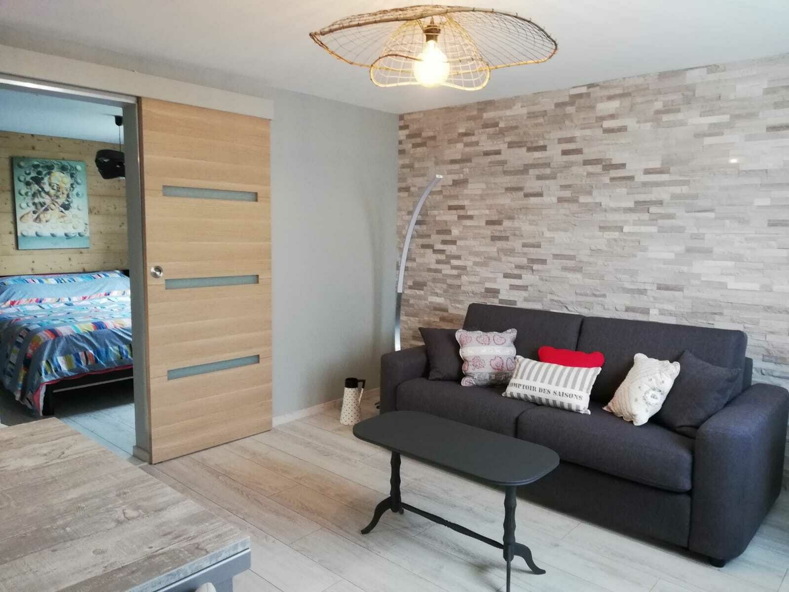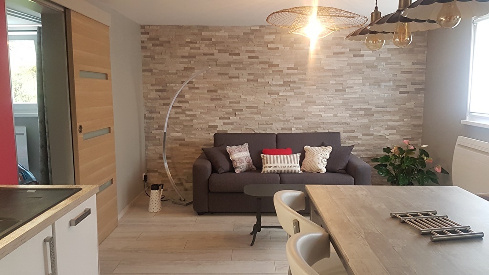 Bel appartement entièrement rénové, aménagé au rez-de-chaussée d'une maison individuelle avec entrée indépendante. Il dispose d'un accès plain-pied sur un grand jardin avec vue sur le château de Joux.