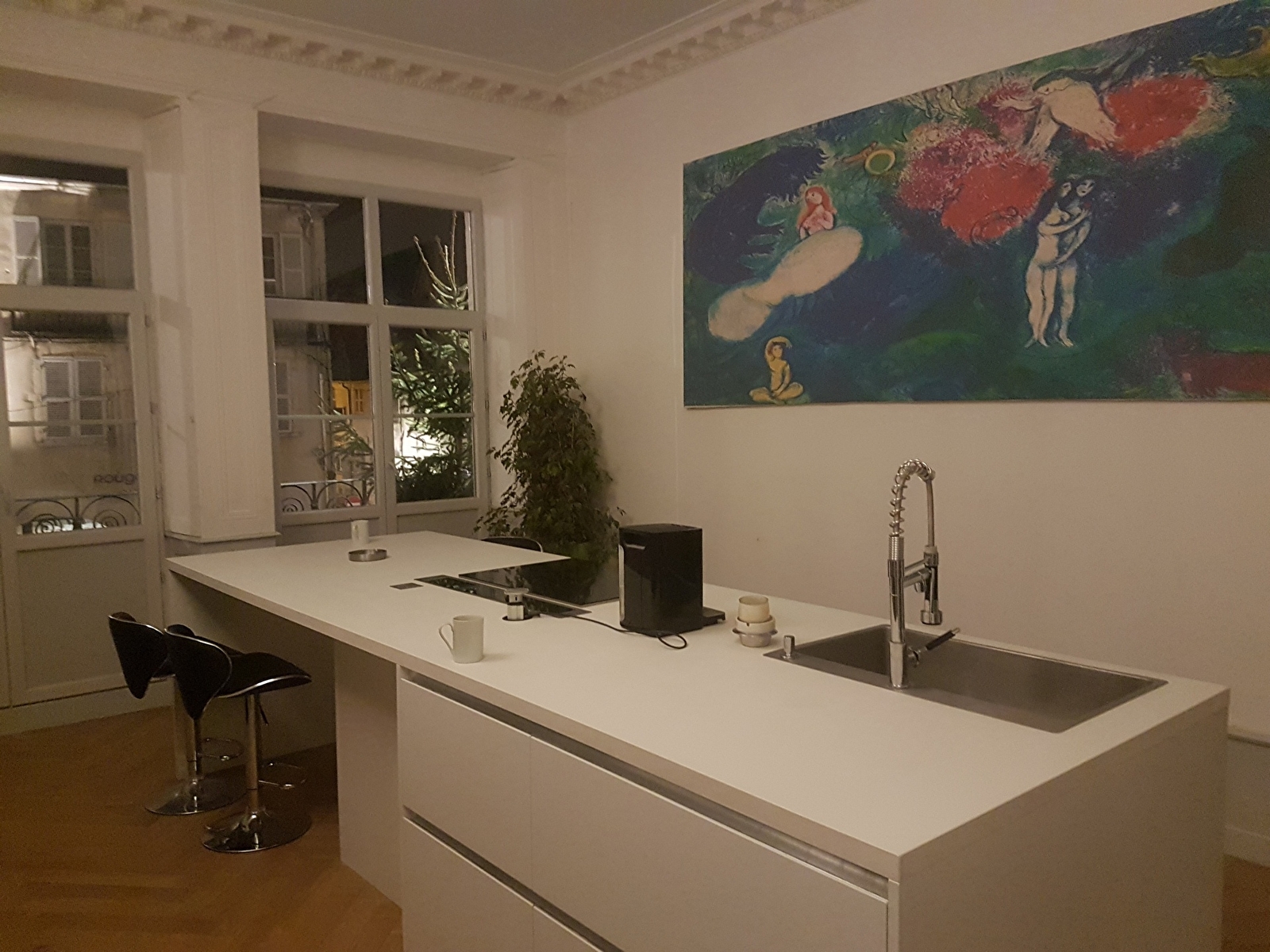 Hyper centre historique. Dans bâtiment classé au 1er étage, vue imprenable sur les arcades et l'Hôtel de ville. Grand balcon (8 m²), confort moderne, prestations haut de gamme.