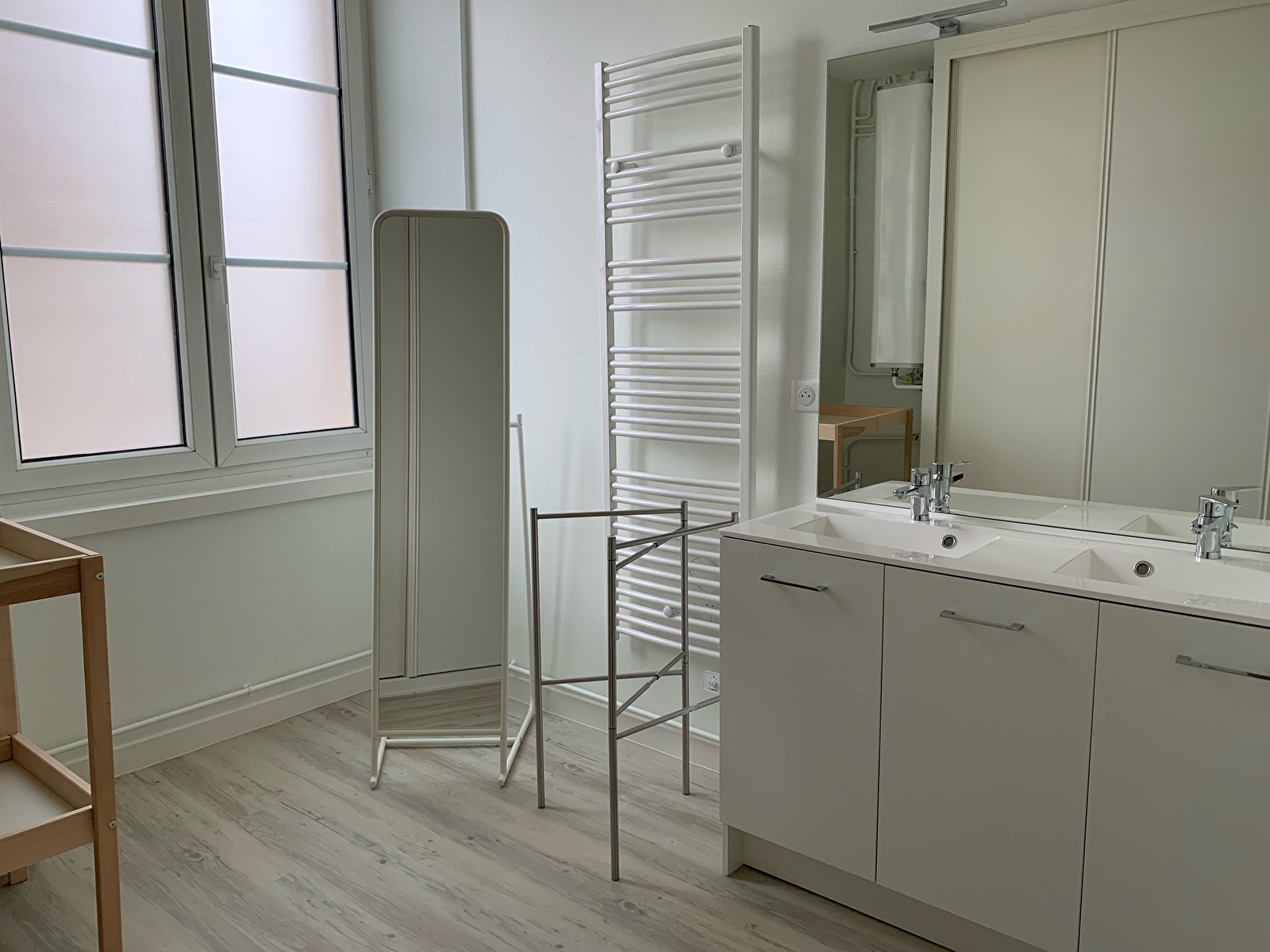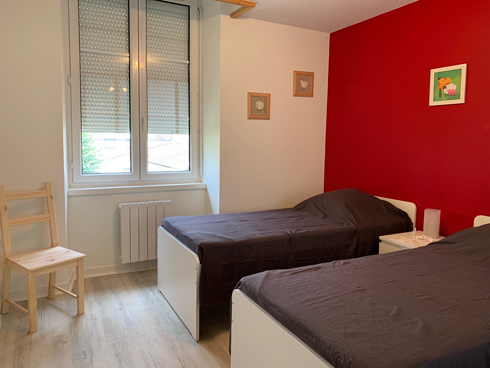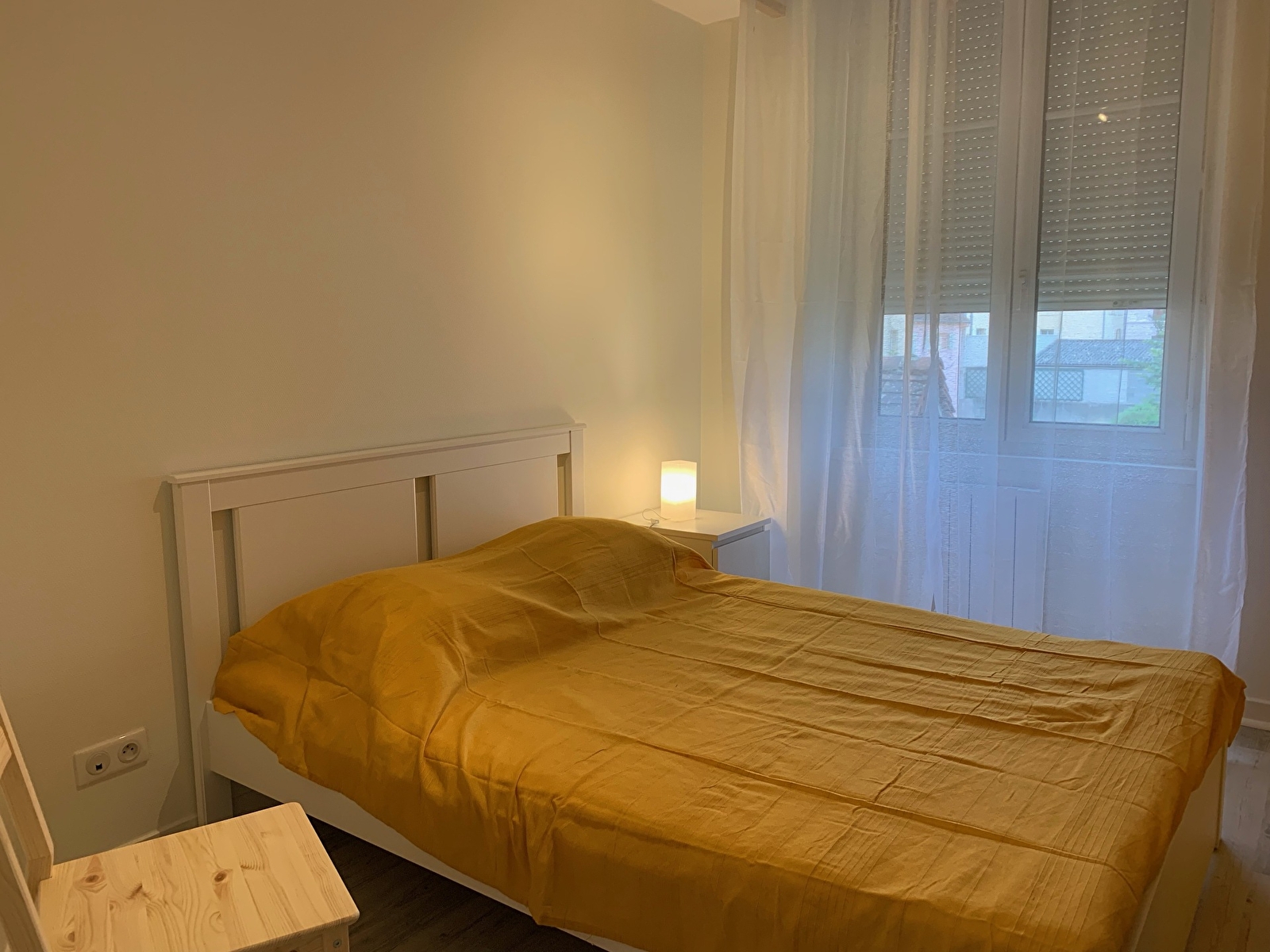 Appartement meublé au cœur de ville. Comprenant :séjour avec cuisine : Evier / Plaque vitrocéramique / Micro-onde / Réfrigérateur / Cafetière / Bouilloire + coin repas pour 6 personnes