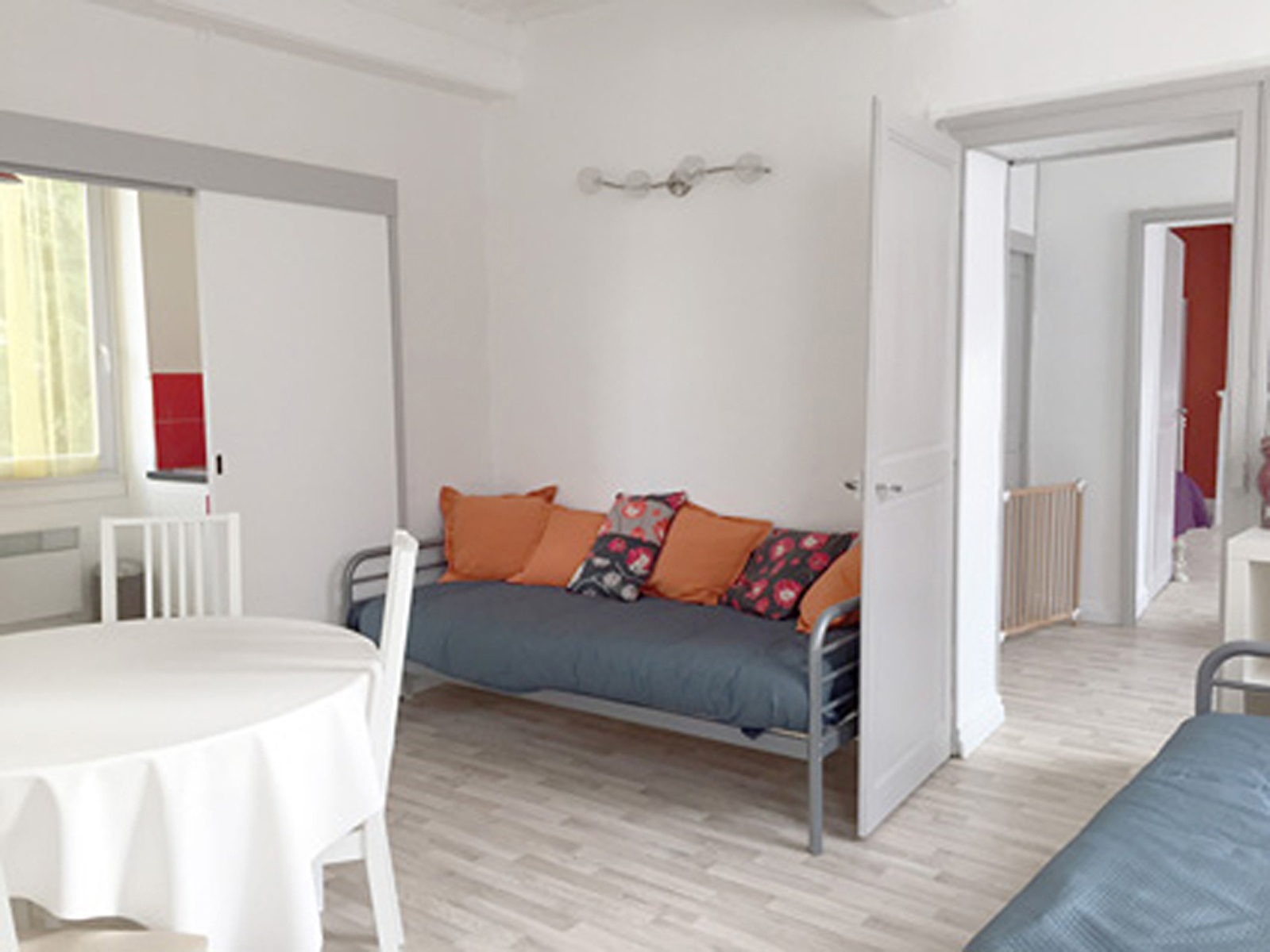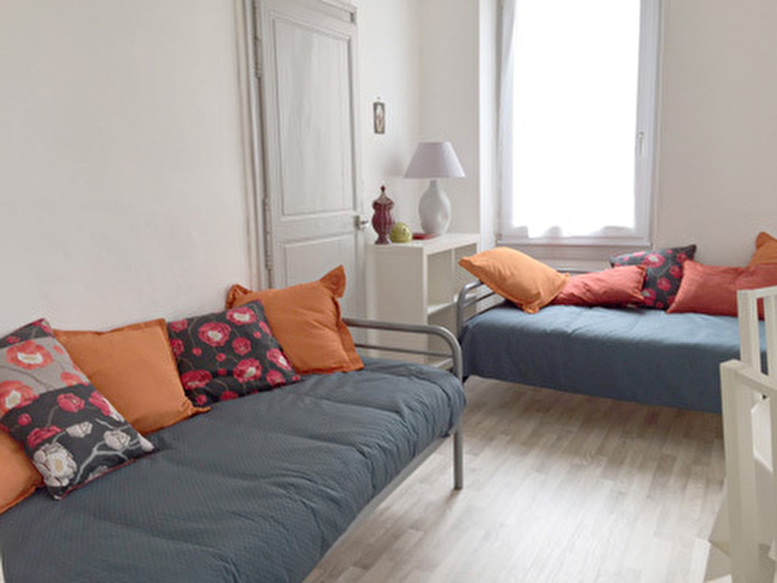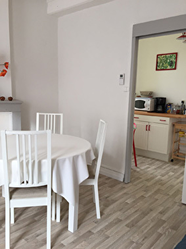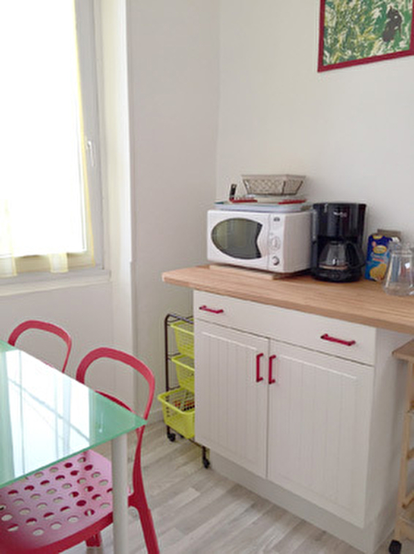 Appartement 2 pièces pour 4 personnes situé en centre ville de Paray-le-Monial. Coin repas et cuisine entièrement équipée (plaque induction, réfrigérateur, micro-onde, évier, matériel de cuisine et vaisselle). Une salle de bain avec lavabo, douche et WC.
